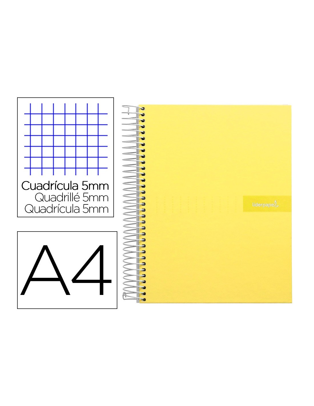 Tapa de cartón entrecolado de 1,5 mm de espesor, forrado con papel estucado mate de 1,35 g/m². Guarda interior impresa y plastificada. Papel de 90 g/m ². Espiral nylonizada. Coil-lock.