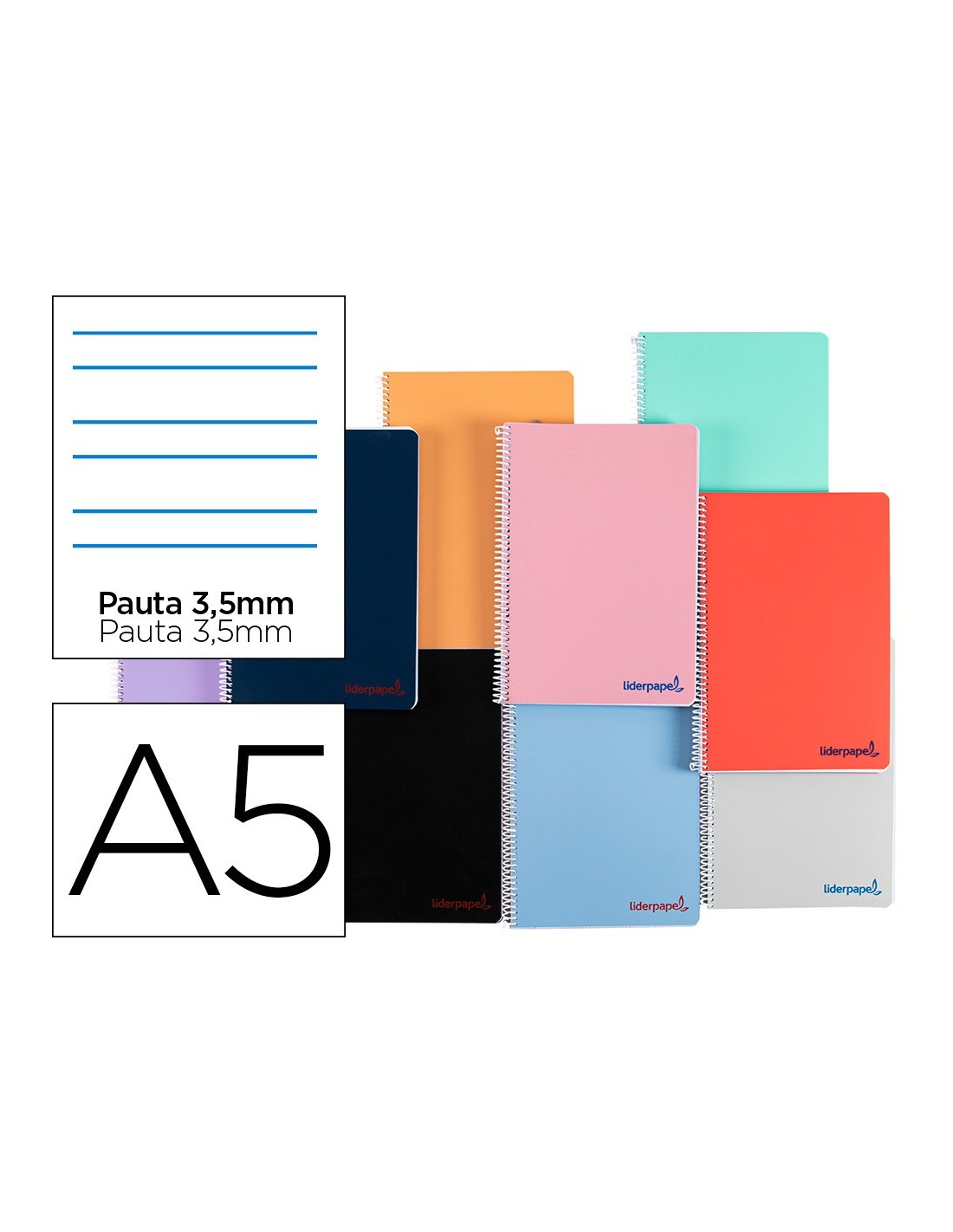 Tapa de polipropileno opaco de 600 micras impreso, que proporciona mayor duración y flexibilidad al cuaderno. Papel de 90 g/m².