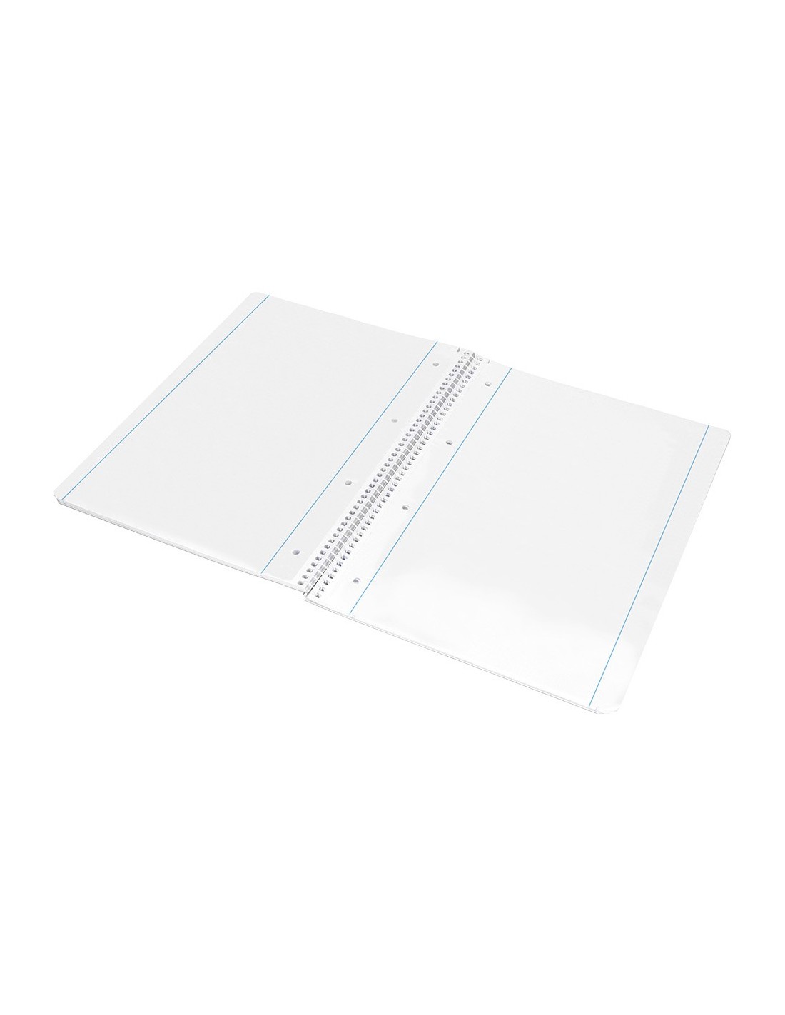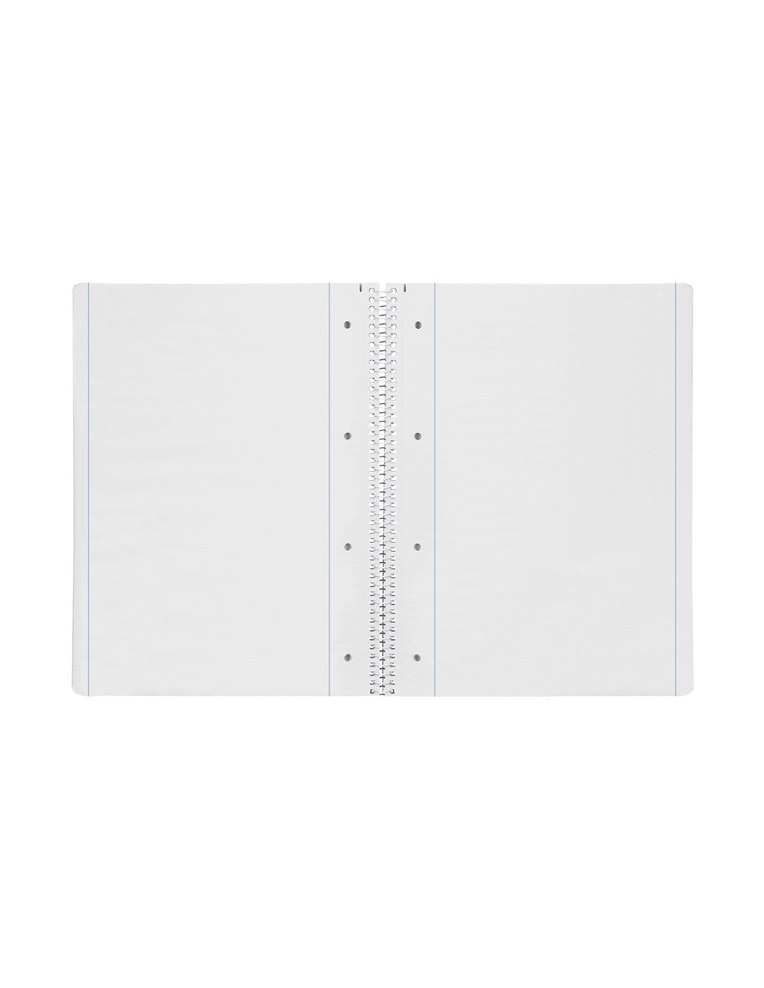 Tapa de cartón compacto de 700 g/m², barnizado a una cara en brillo. 80 hojas. Papel de 60 g/m². Espiral nylonizada negra. Con margen. Coil-lock.