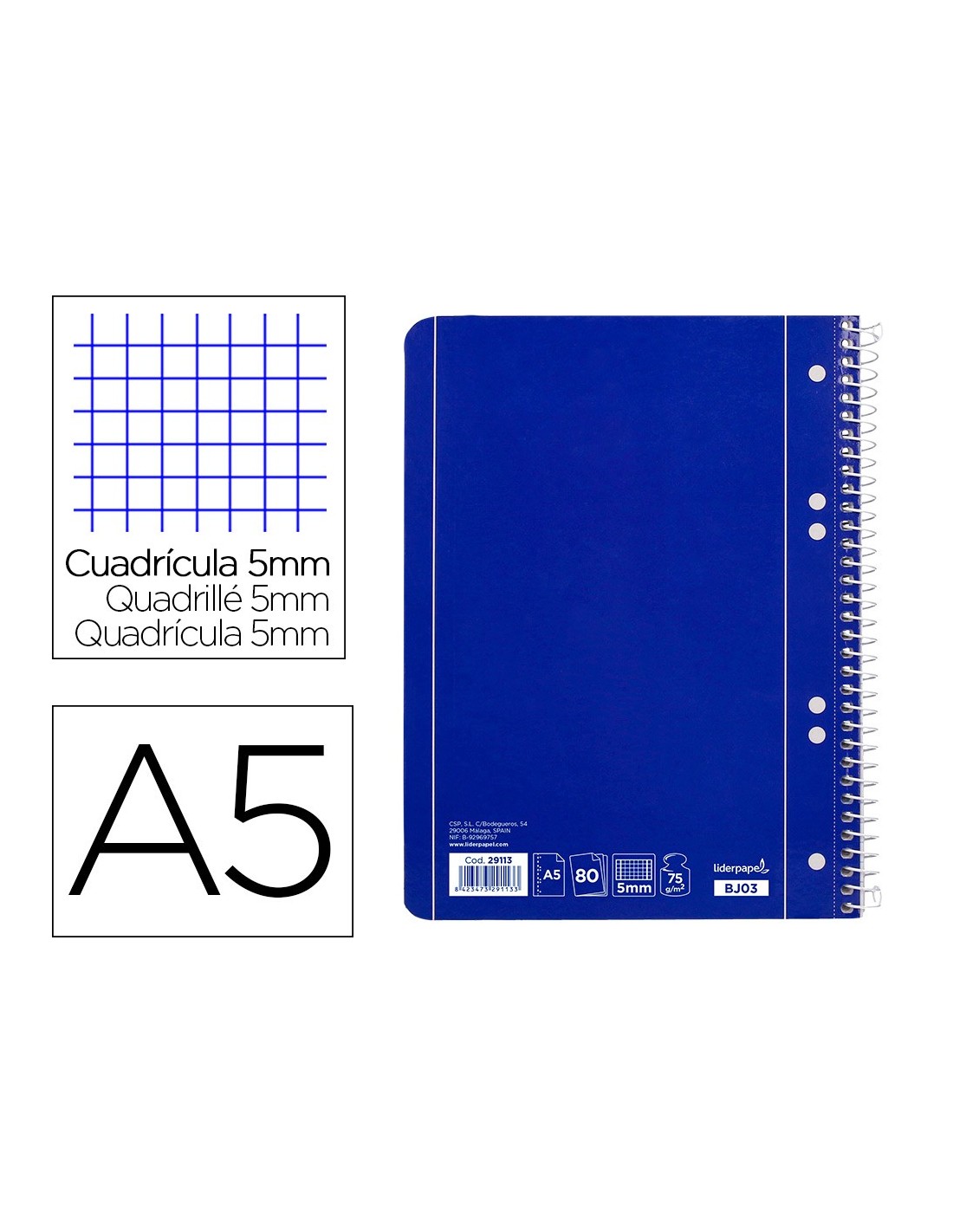 CUADERNO ESP. LIDERPAPEL A5 T.BLANDA MICRO 5MM 6T. 80H. 70GR. AZ.