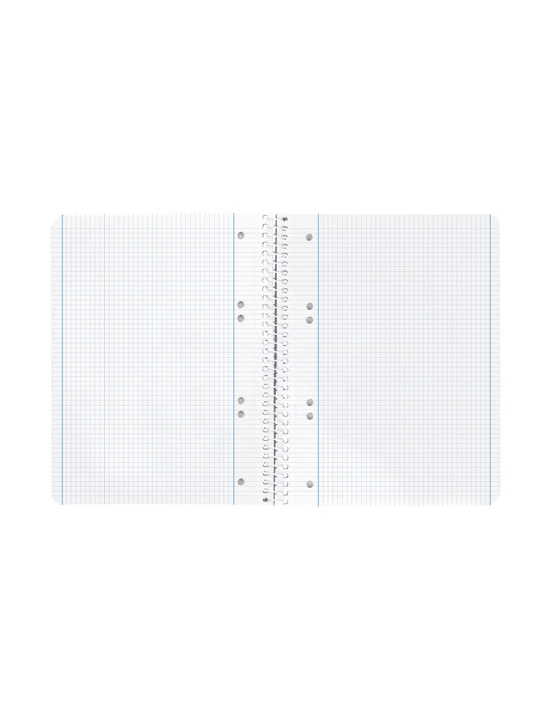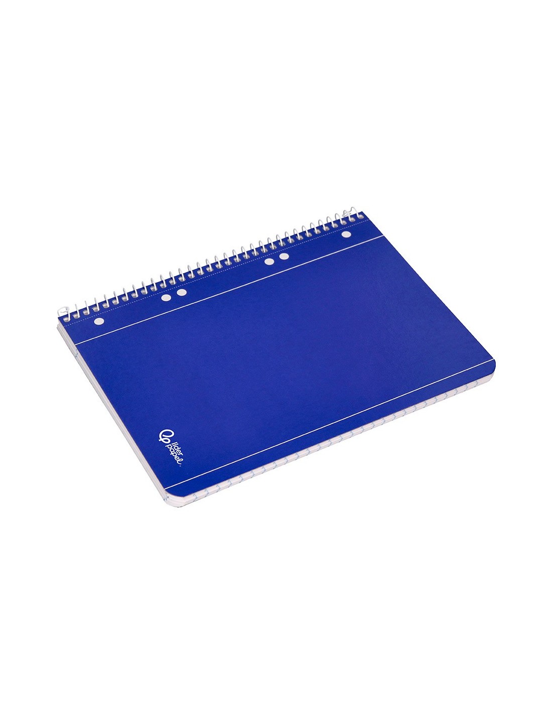 Tapa de cartón compacto de 700 g/m², barnizado a una cara en brillo. 80 hojas. Papel de 60 g/m². Espiral nylonizada negra. Con margen. Coil-lock.