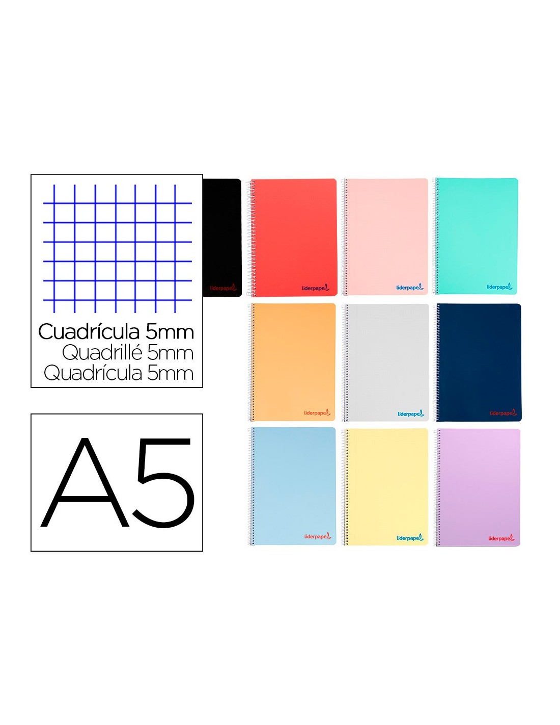 Tapa de polipropileno opaco de 600 micras impreso, que proporciona mayor duración y flexibilidad al cuaderno. Papel de 90 g/m².