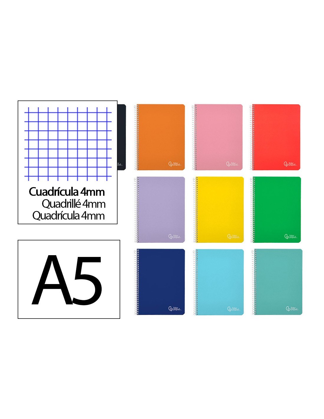 El cuaderno Liderpapel Din A5 Witty con espiral blanco, en un surtido de diez colores, no solo destaca por su funcionalidad, sino tambien por su diseño elegante, tapas de cartón de 800 gramos impresas y con acabado plastificado mate antiroce, que le confiere un aspecto sofisticado y una texturasuave al tacto, con 80 hojas de 90 gramos este cuaderno ofrece una excele nte calidad de papel, ideal para escribir con diversos tipos de bolígrafoso rotuladores sin que la tinta traspase, su tapa dura proporciona protecc ion adicional, manteniendo las notas en perfecto estado incluso con el usodiario. El margen izquierdo facilita la organizacion de las anotaciones, lo que lo convierte en una opcion optima para el ambito academico o profe sional.