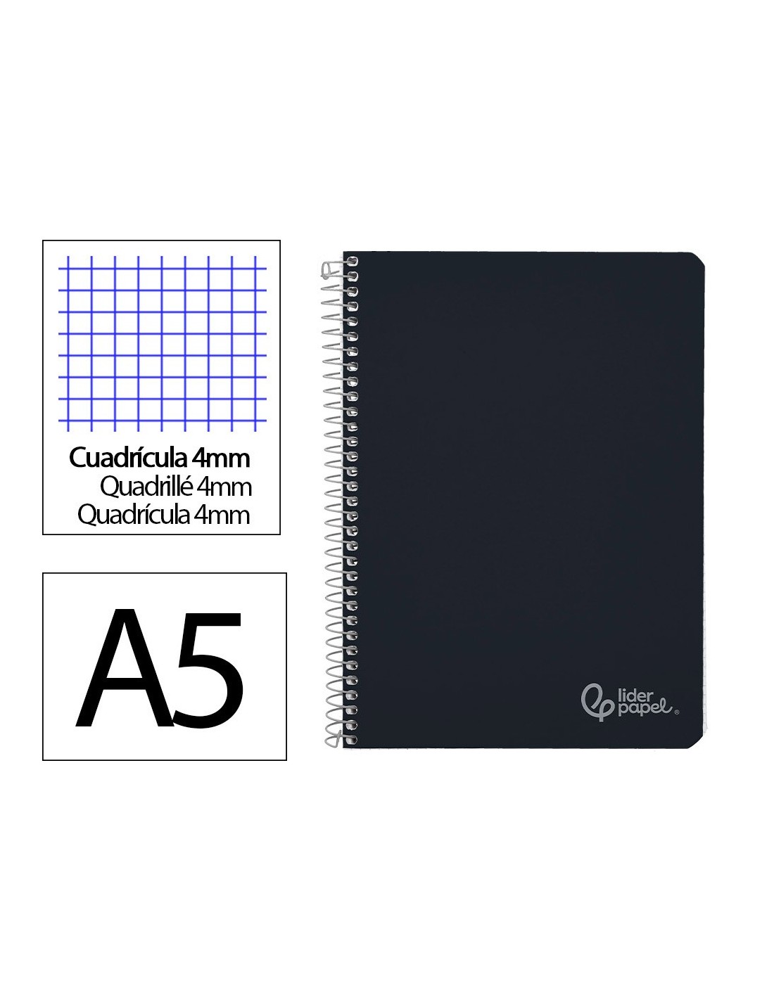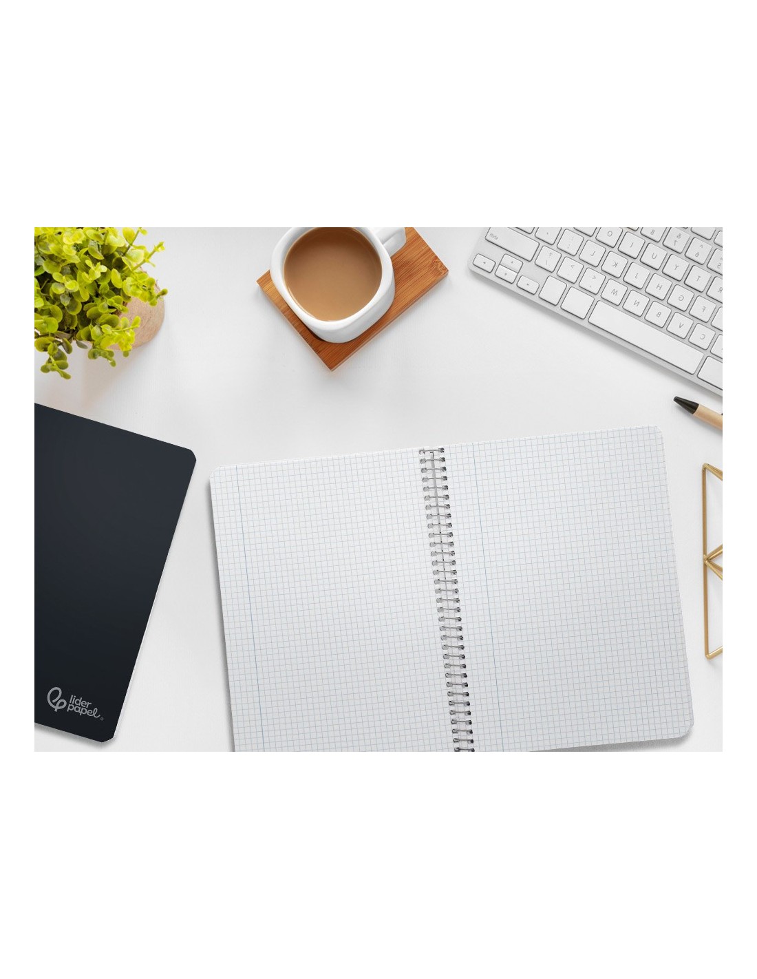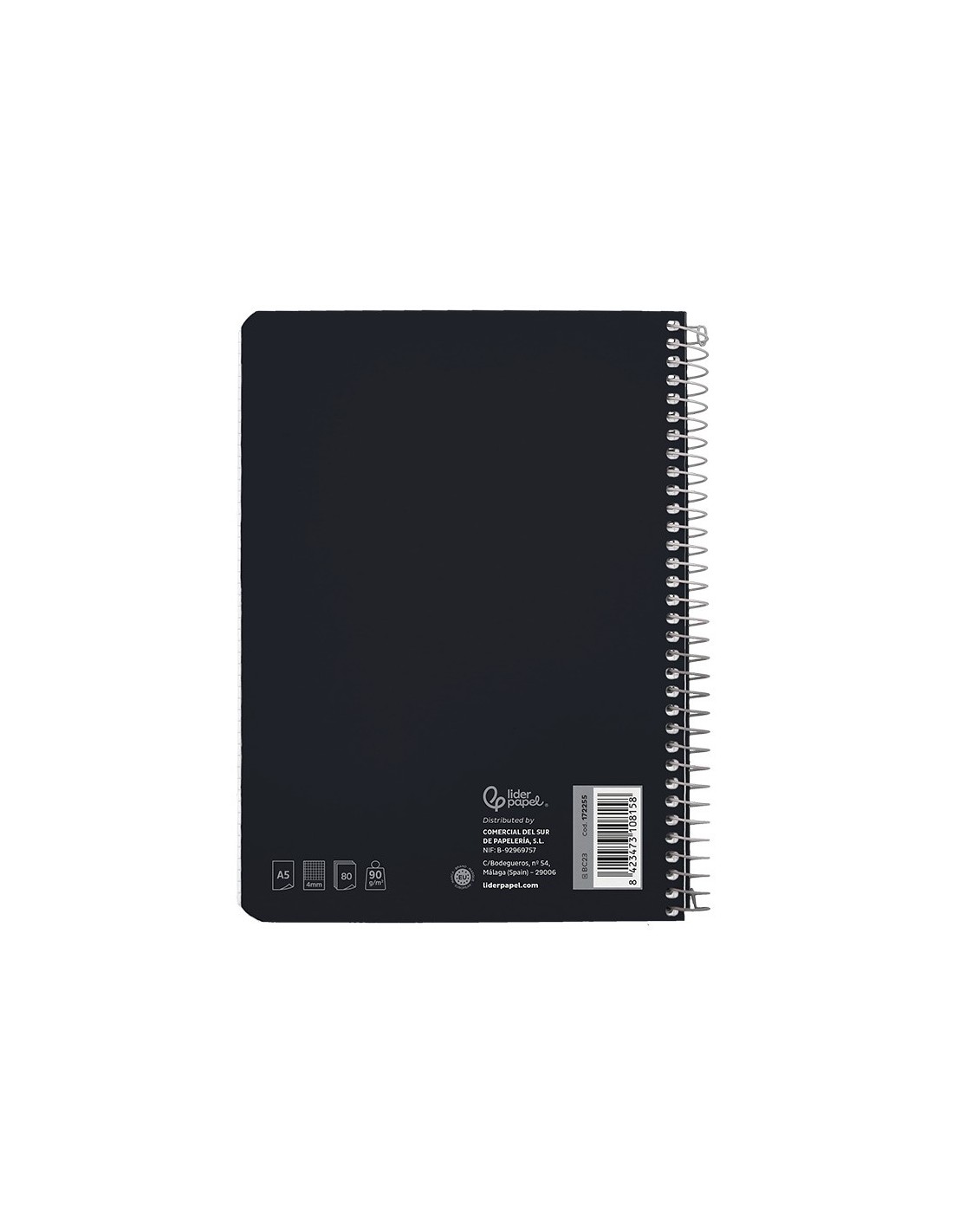El cuaderno Liderpapel Din A5 Witty con espiral blanco, en un surtido de diez colores, no solo destaca por su funcionalidad, sino tambien por su diseño elegante, tapas de cartón de 800 gramos impresas y con acabado plastificado mate antiroce, que le confiere un aspecto sofisticado y una textura suave al tacto, con 80 hojas de 90 gramos este cuaderno ofrece una excelente calidad de papel, ideal para escribir con diversos tipos de bolígrafos o rotuladores sin que la tinta traspase, su tapa dura proporciona proteccion adicional, manteniendo las notas en perfecto estado incluso con el uso diario. El margen izquierdo facilita la organizacion de las anotaciones, lo que lo convierte en una opcion optima para el ambito academico o profesional.