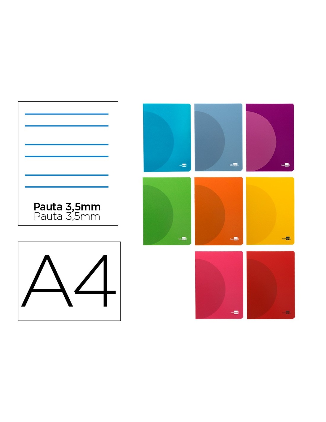 Libreta con tapa de plástico flexible y resistente. Se puede abrir completamente para una mayor comodidad. 48 hojas. Papel de 90 g/m². Con margen. Colores surtidos.