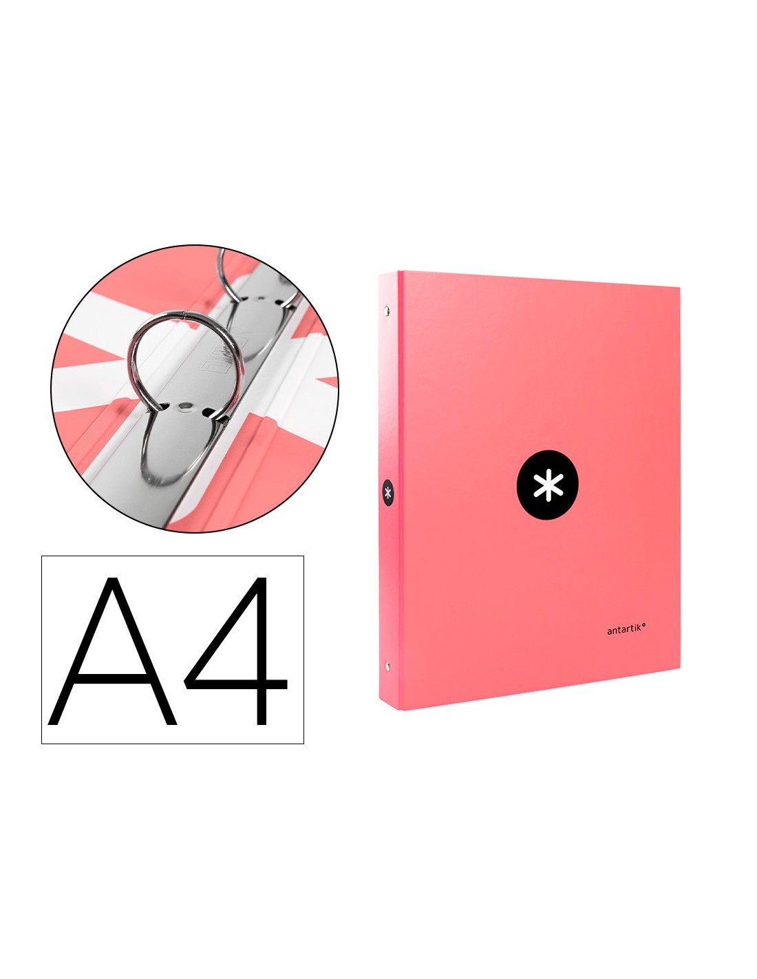 CARPETA ANTARTIK A4 FORRADA 4 ANILLAS 25MM REDONDAS CORAL