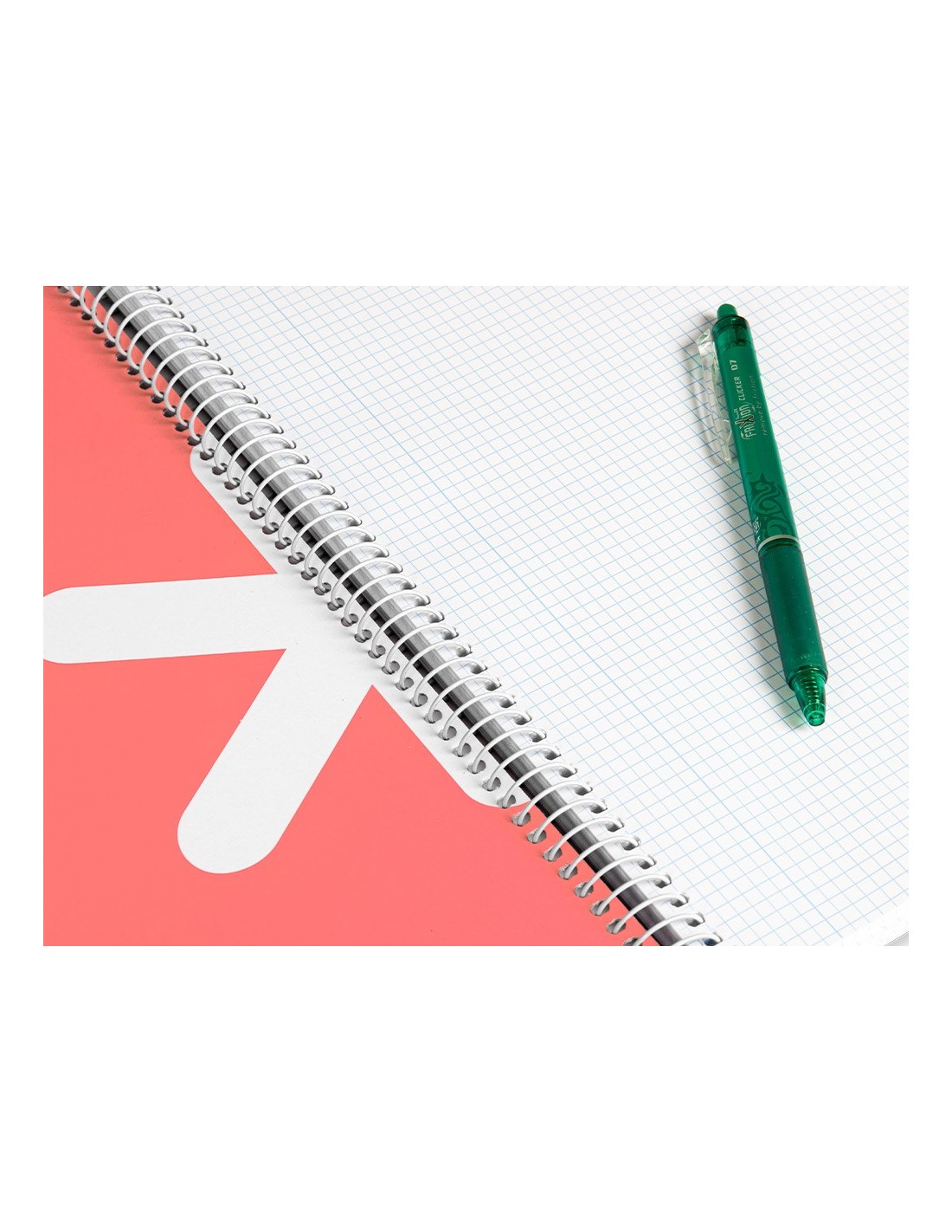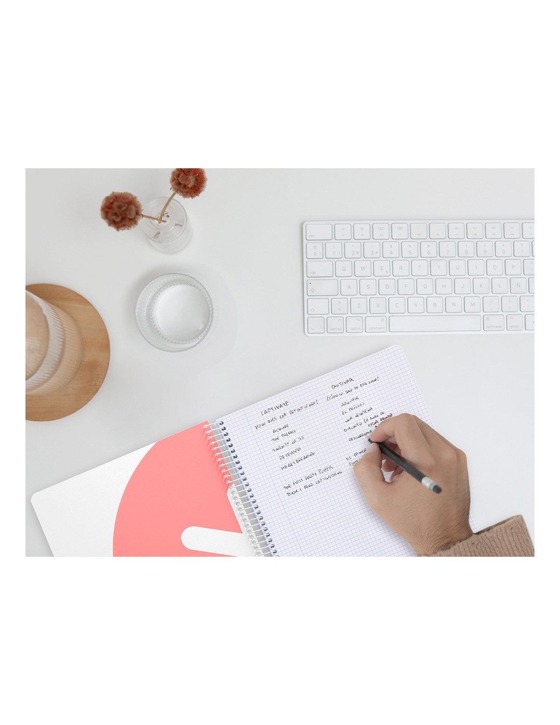 El cuaderno de más alta gama del mercado: exclusivo diseño, características inigualables, un cuaderno sin precedentes que se distingue por la suavidad y blancura de su papel, y además hace la escritura muy fluida. Tapa dura de cartoncillo de 800 g/m² con doble encolado, impresa y plastificada mate extrasuave. Interior de portada impresa y plastificada mate. Gran resistencia y rigidez. Papel extrablanco de 100 g/m², ultrasuave que hace la escritura mucho más fluida. La tinta no traspasa. Espiral nylonizada de colores. Coil-lock.