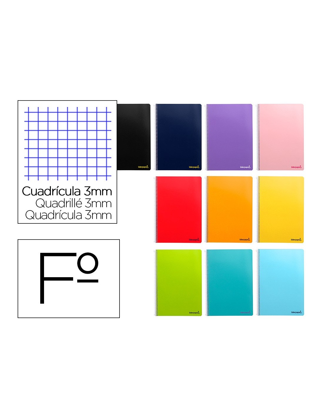 Tapa de cartoncillo impresa y plastificada en polipropileno brillo. Contratapa de cartoncillo. Papel de 60 g/m². Espiral nylonizada. Con margen. 10 colores. Coil-lock.