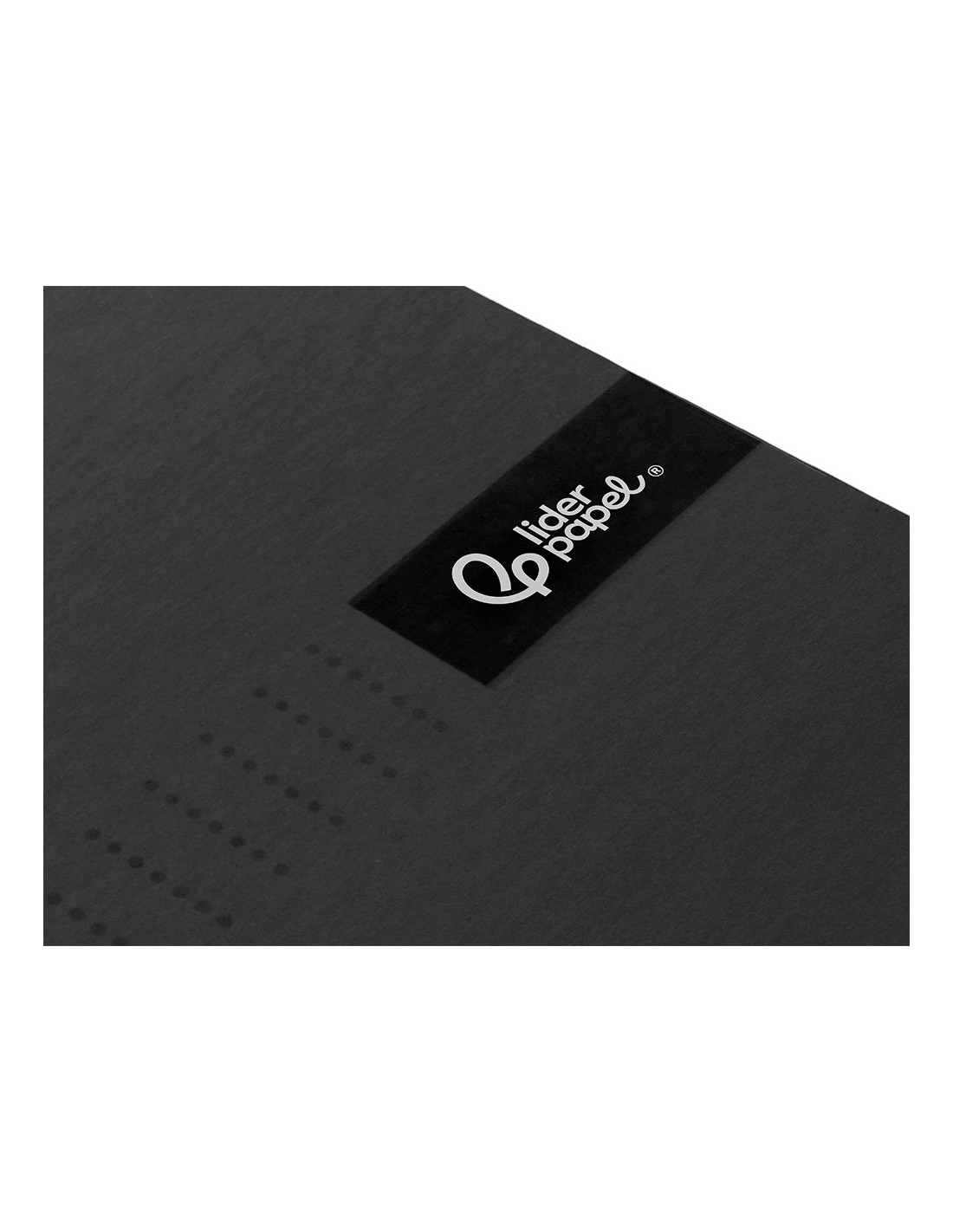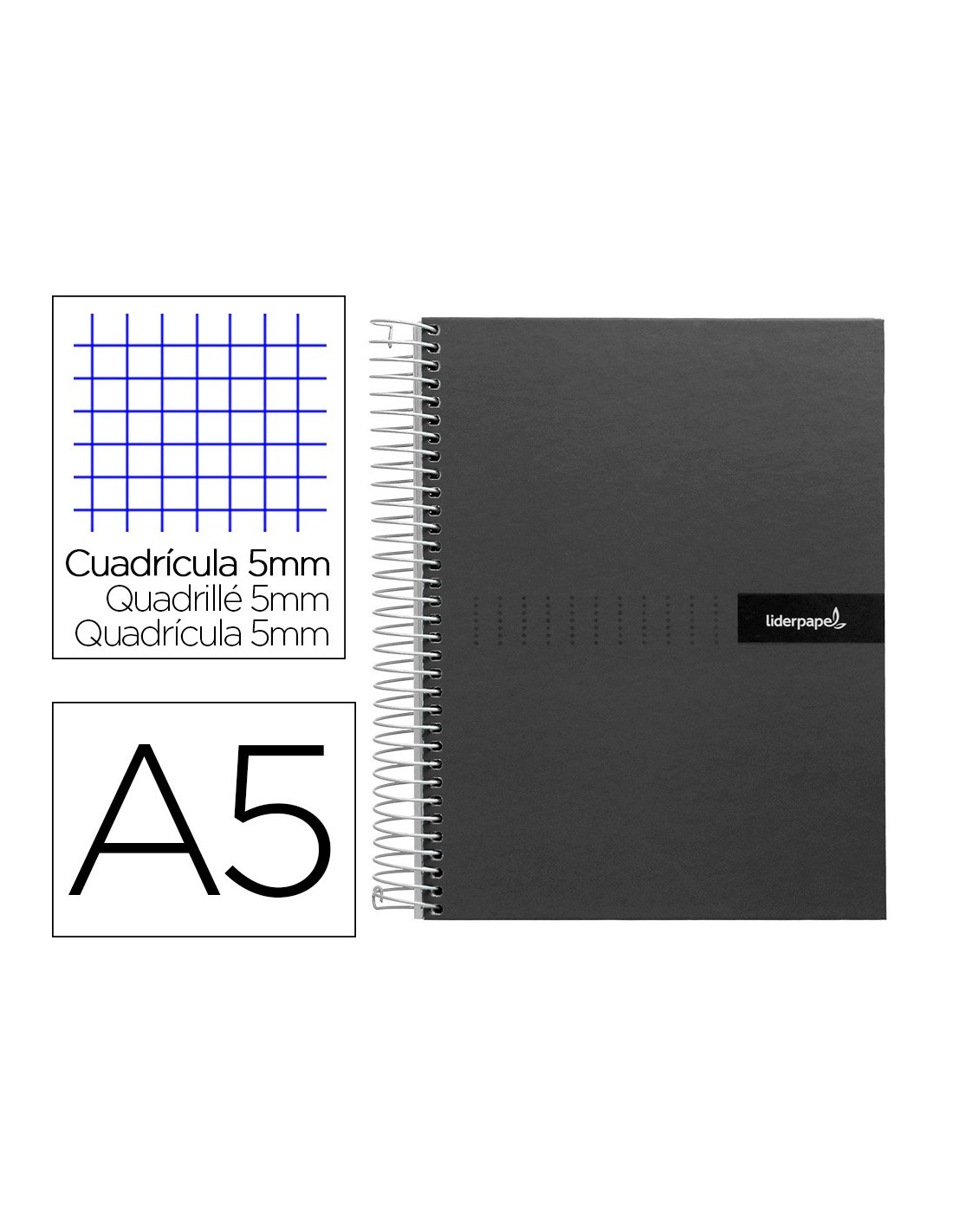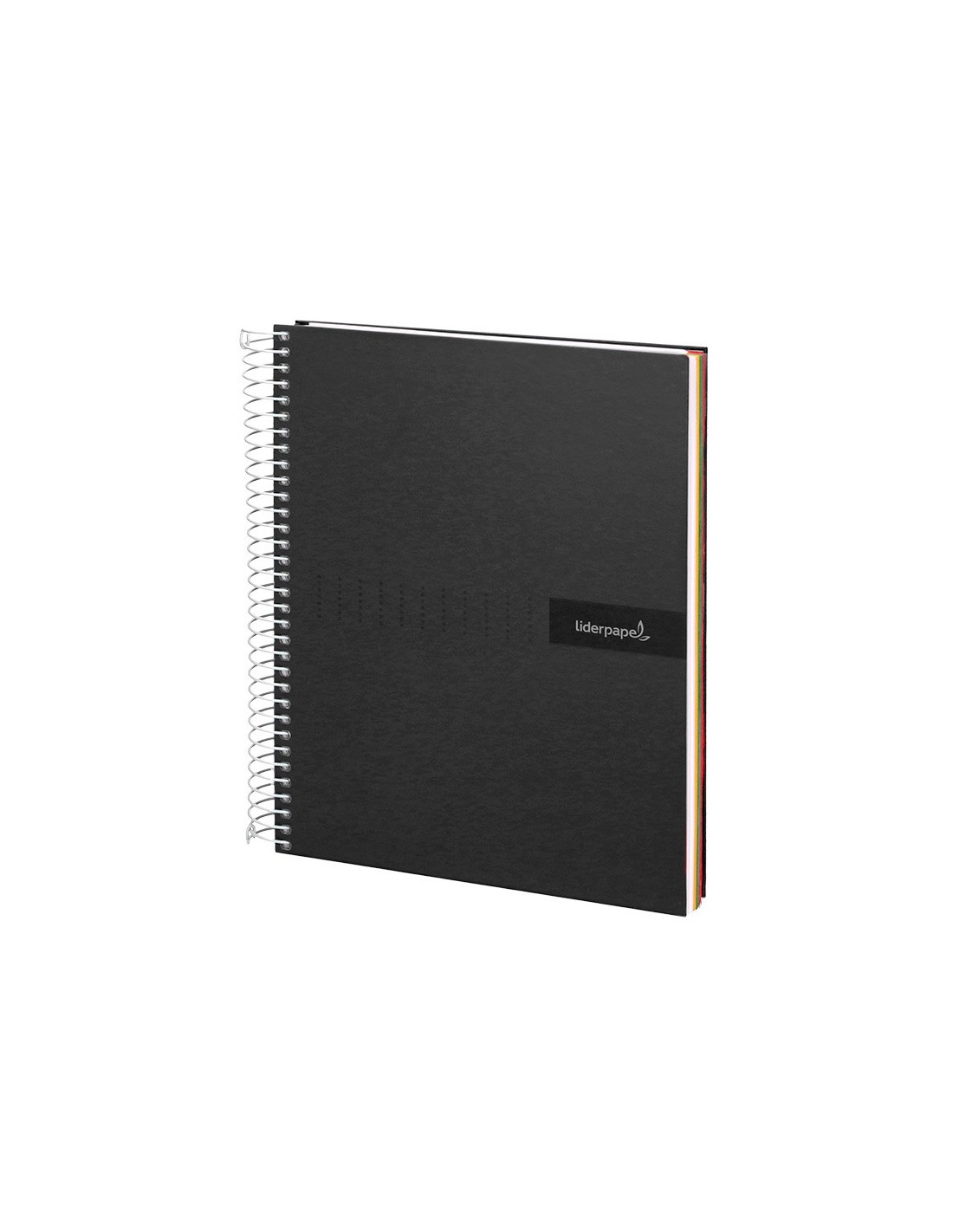 Tapa de cartón entrecolado de 1,5 mm de espesor, forrado con papel estucado mate de 1,35 g/m². Guarda interior impresa y plastificada. Papel de 90 g/m ². Espiral nylonizada. Coil-lock.