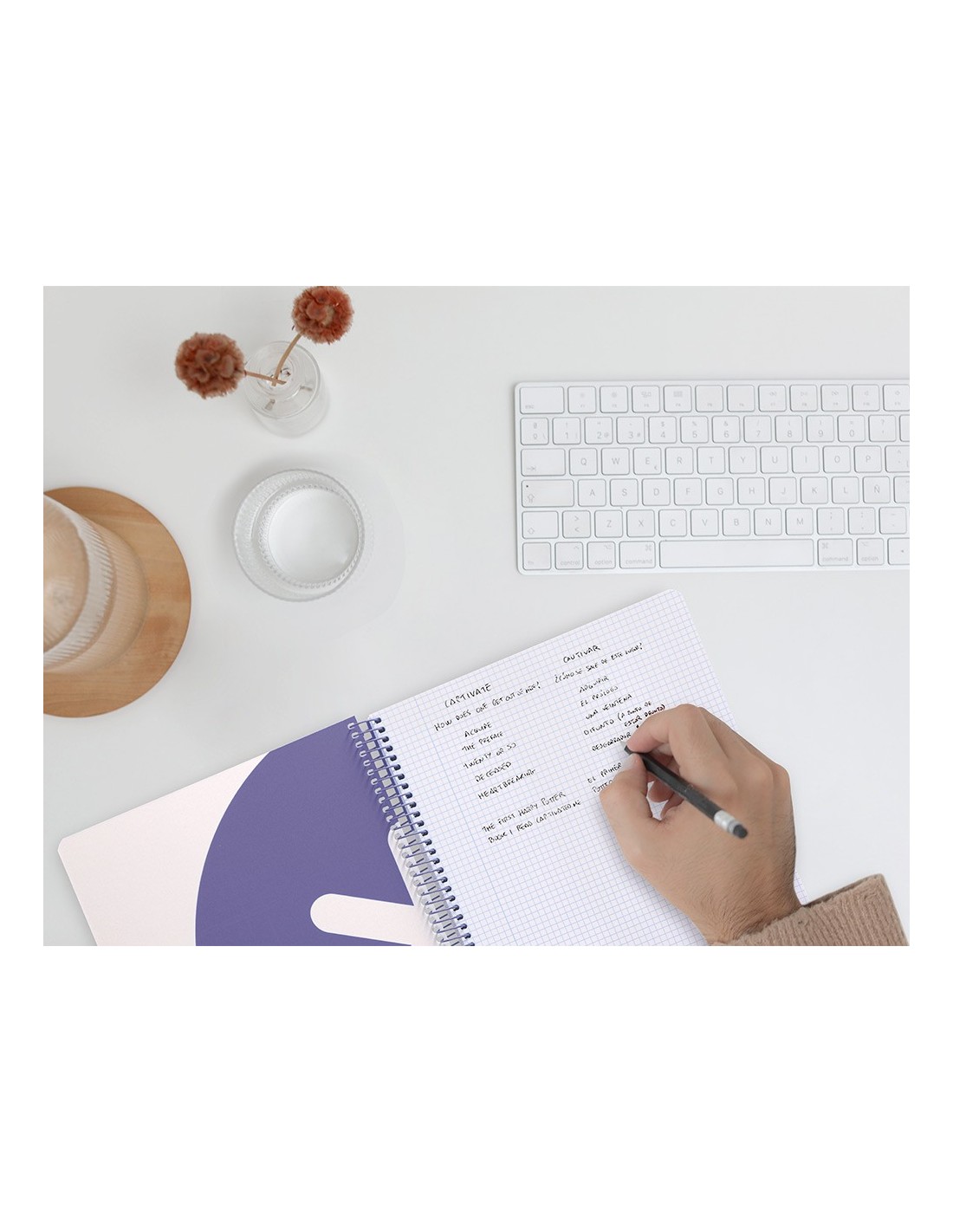El cuaderno de más alta gama del mercado: exclusivo diseño, características inigualables, un cuaderno sin precedentes que se distingue por la suavidad y blancura de su papel, y además hace la escritura muy fluida. Tapa dura de cartoncillo de 800 g/m² con doble encolado, impresa y plastificada mate extrasuave. Interior de portada impresa y plastificada mate. Gran resistencia y rigidez. Papel extrablanco de 90 g/m², ultrasuave que hace la es critura mucho más fluida. La tinta no traspasa. Espiral nylonizada de colores. Coil-lock.