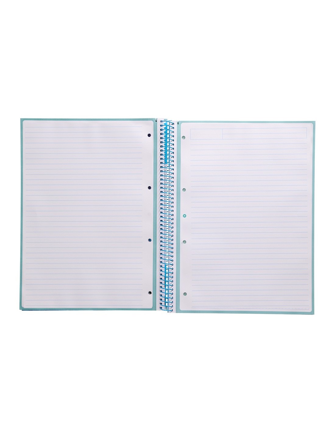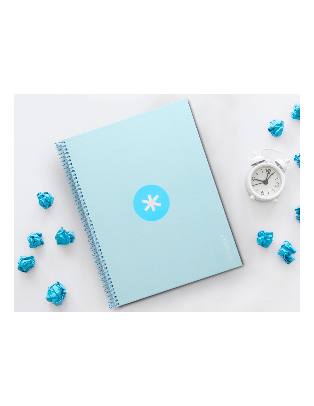 El cuaderno de más alta gama del mercado: exclusivo diseño, características inigualables, un cuaderno sin precedentes que se distingue por la suavidad y blancura de su papel, y además hace la escritura muy fluida. Tapa de cartón entrecolado de 1,5 mm de espesor, forrado a una cara con papel estucado mate extrasuave y reserva de barniz UVI. Guarda interior impresa. 100 y 120 hojas. Gran resistencia y rigidez. Papel extrablanco de 100 g/m², ultrasuave que hace la escritura mucho más fluida. La tinta no traspasa. 4 bandas de colores (formato A6) y 5 bandas de colores (formatos A5 y A4). Espiral nylonizada de colores. Coil-lock.