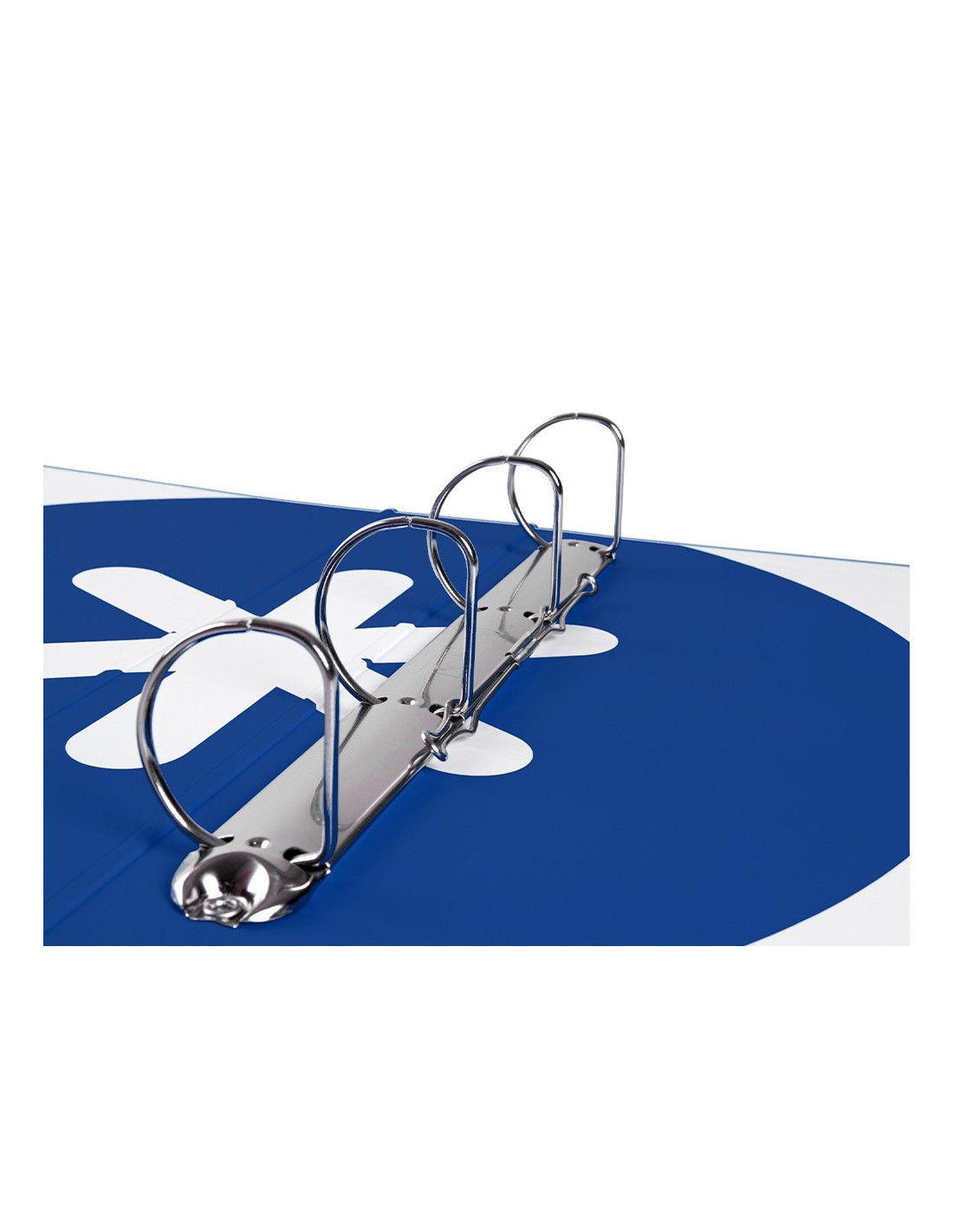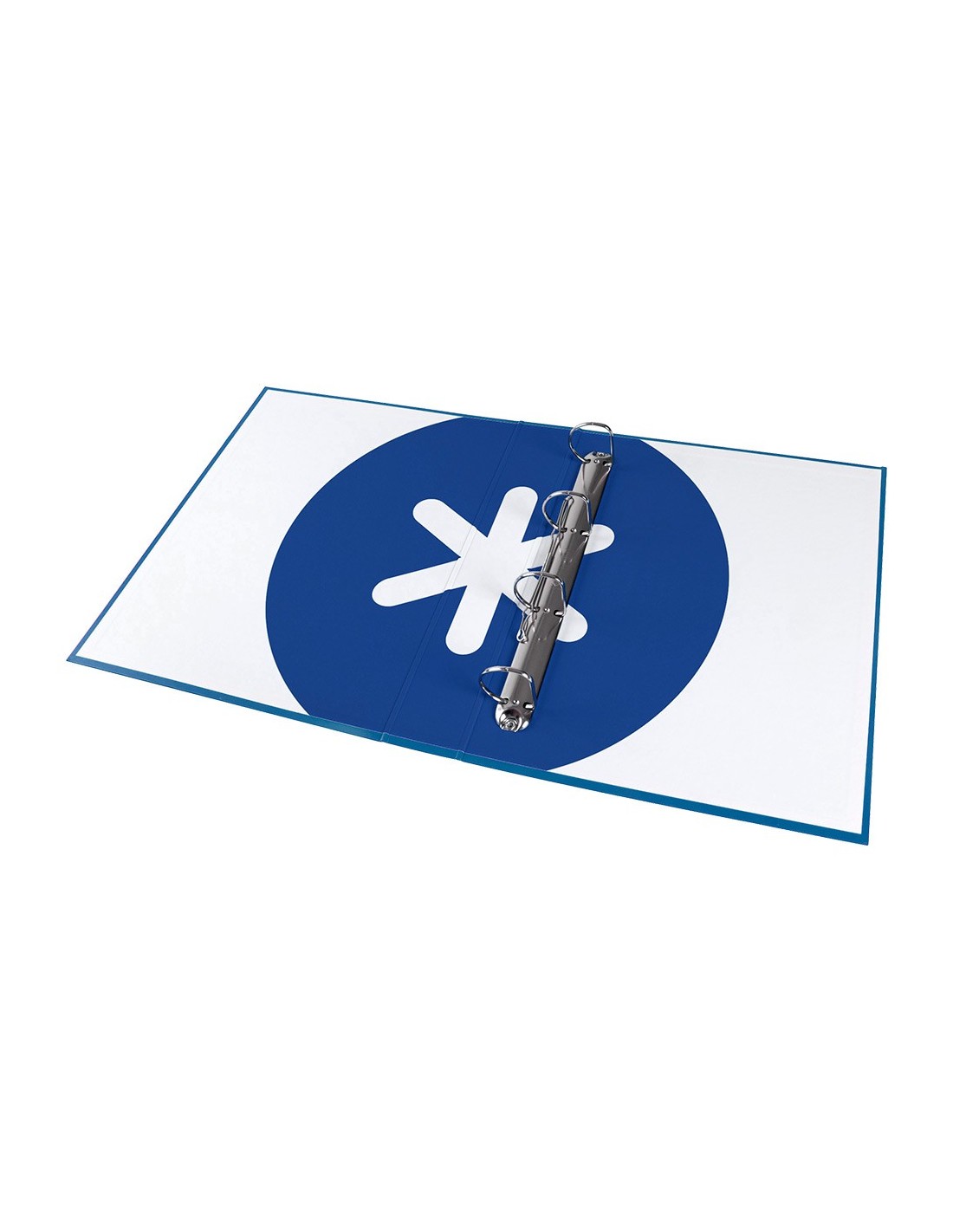 Carpeta fabricada en cartón forrado de 1,5 mm de espesor. Forrada en papel estucado de 135 g/m² impreso. Plastificada mate con detalles en barniz UVI. Con 4 anillas de 40 mm. Guarda interior impresa. Formato DIN A4.