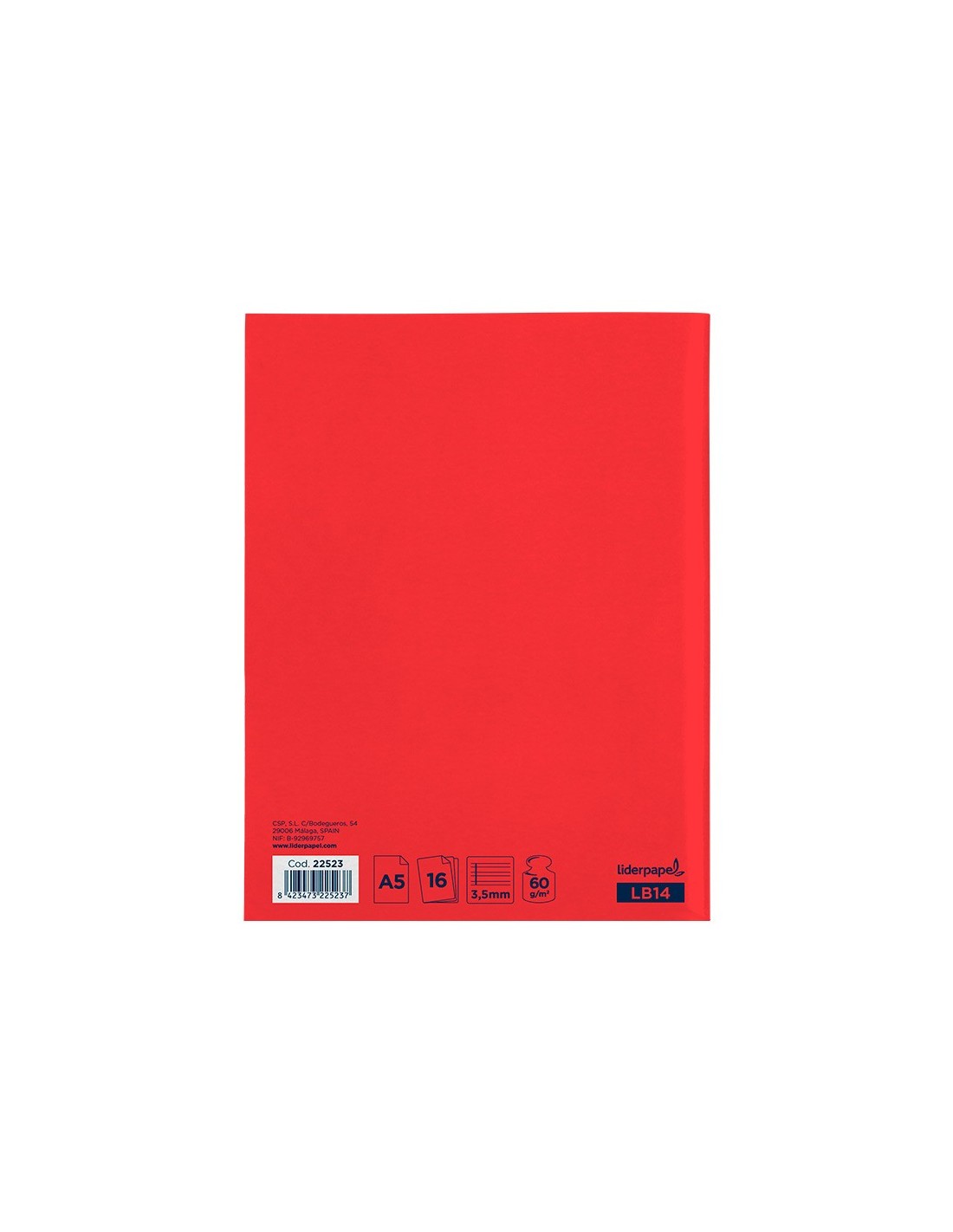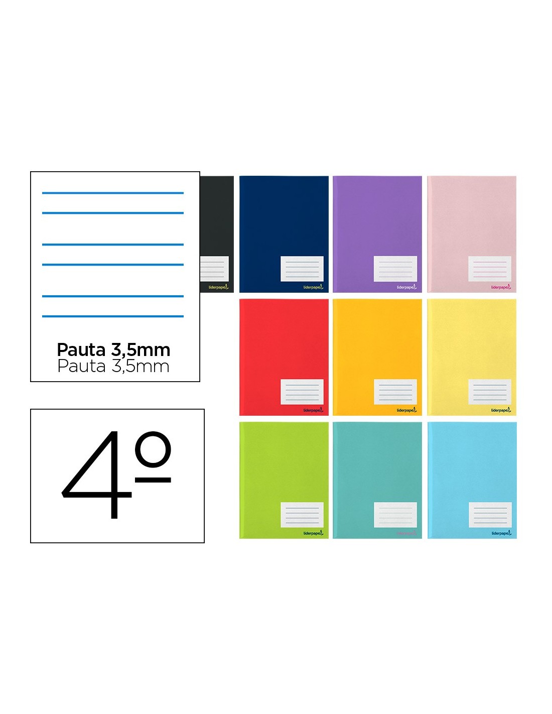 Tapa de 250 g/m² fabricada en cartoncillo impreso y plastificado brillo. Papel de 60 g/m². Contienen etiqueta en la portada para rellenar con datos. Con margen. Colores surtidos.