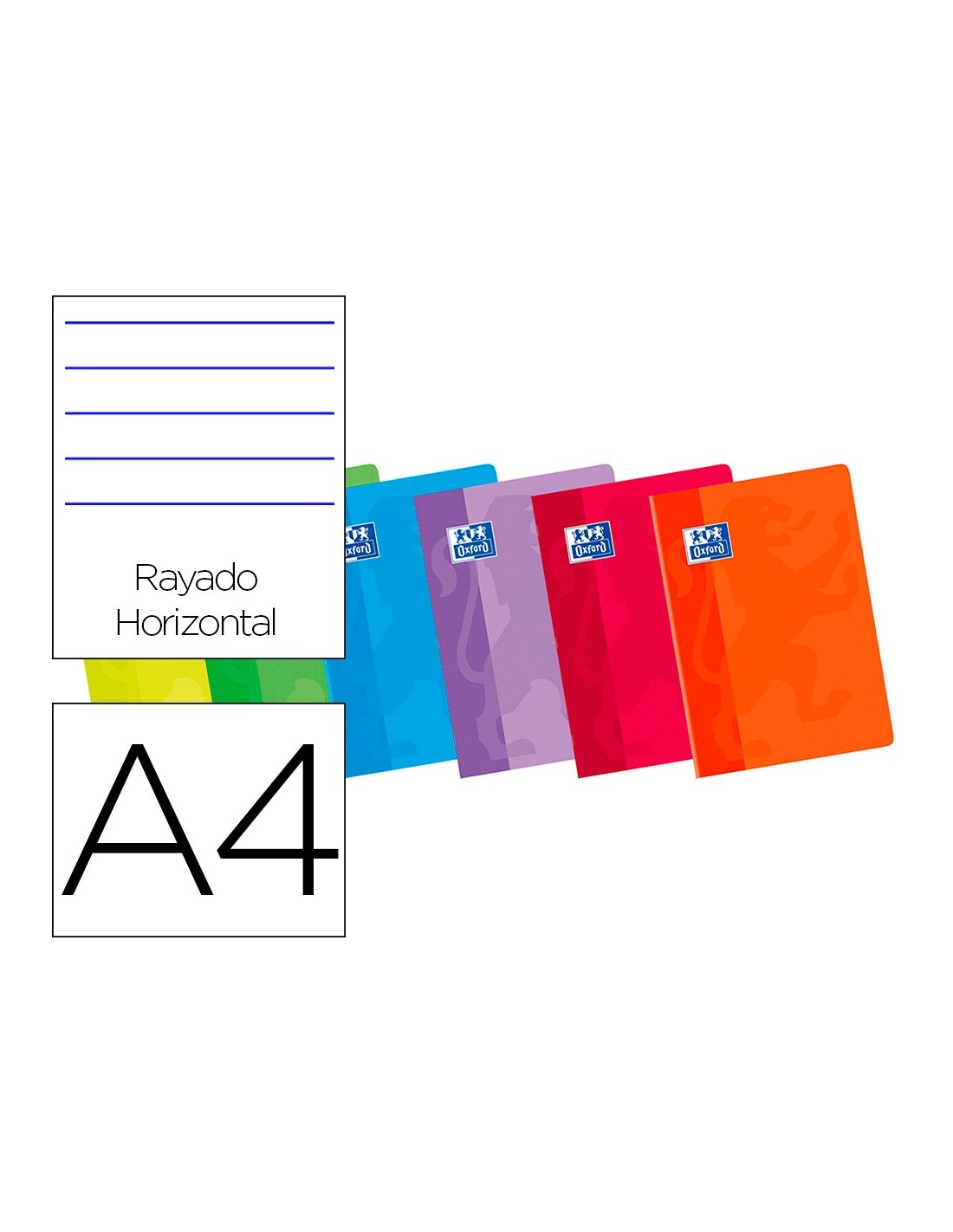 CUADERNO ENCOLADO OXFORD A4 HORIZONTAL 48H. 90GR. COL.SURT.