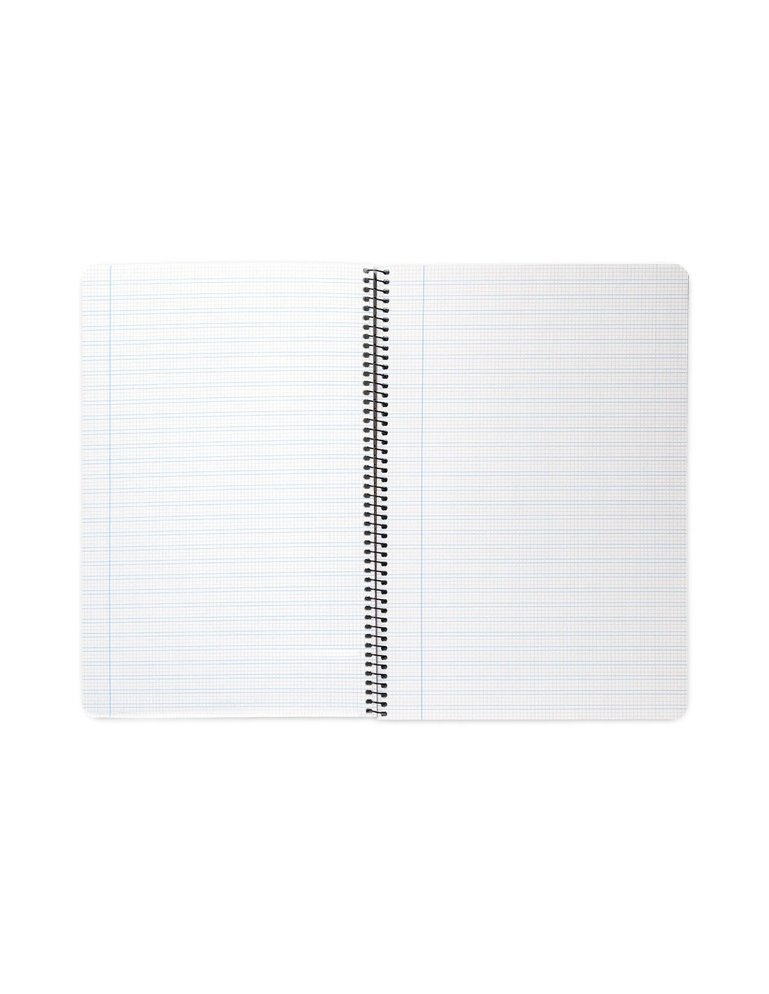 Tapa de cartoncillo impresa y plastificada brillo con relieve. Cuadrícula pautada en su interior que marca en cada línea el inicio de la escritura. Contratapa de cartoncillo. Papel de 80 g/m².