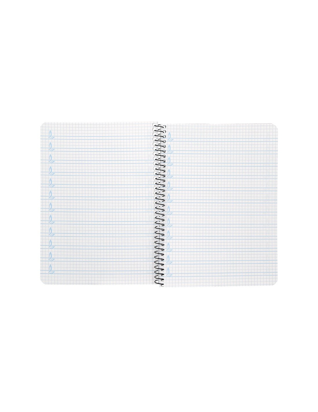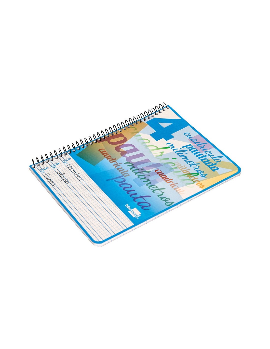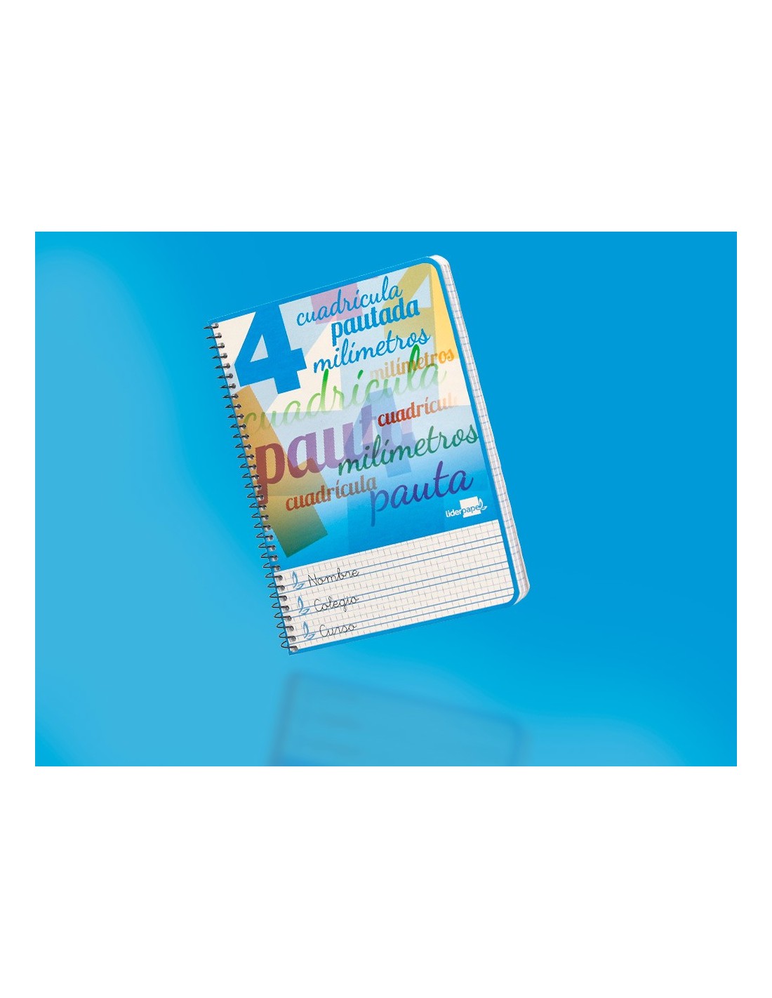 Tapa de cartoncillo impresa y plastificada brillo con relieve. Cuadrícula pautada en su interior que marca en cada línea el inicio de la escritura. Contratapa de cartoncillo. Papel de 80 g/m².