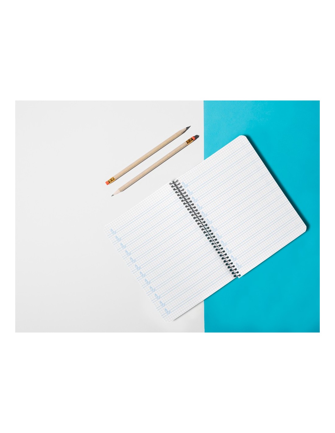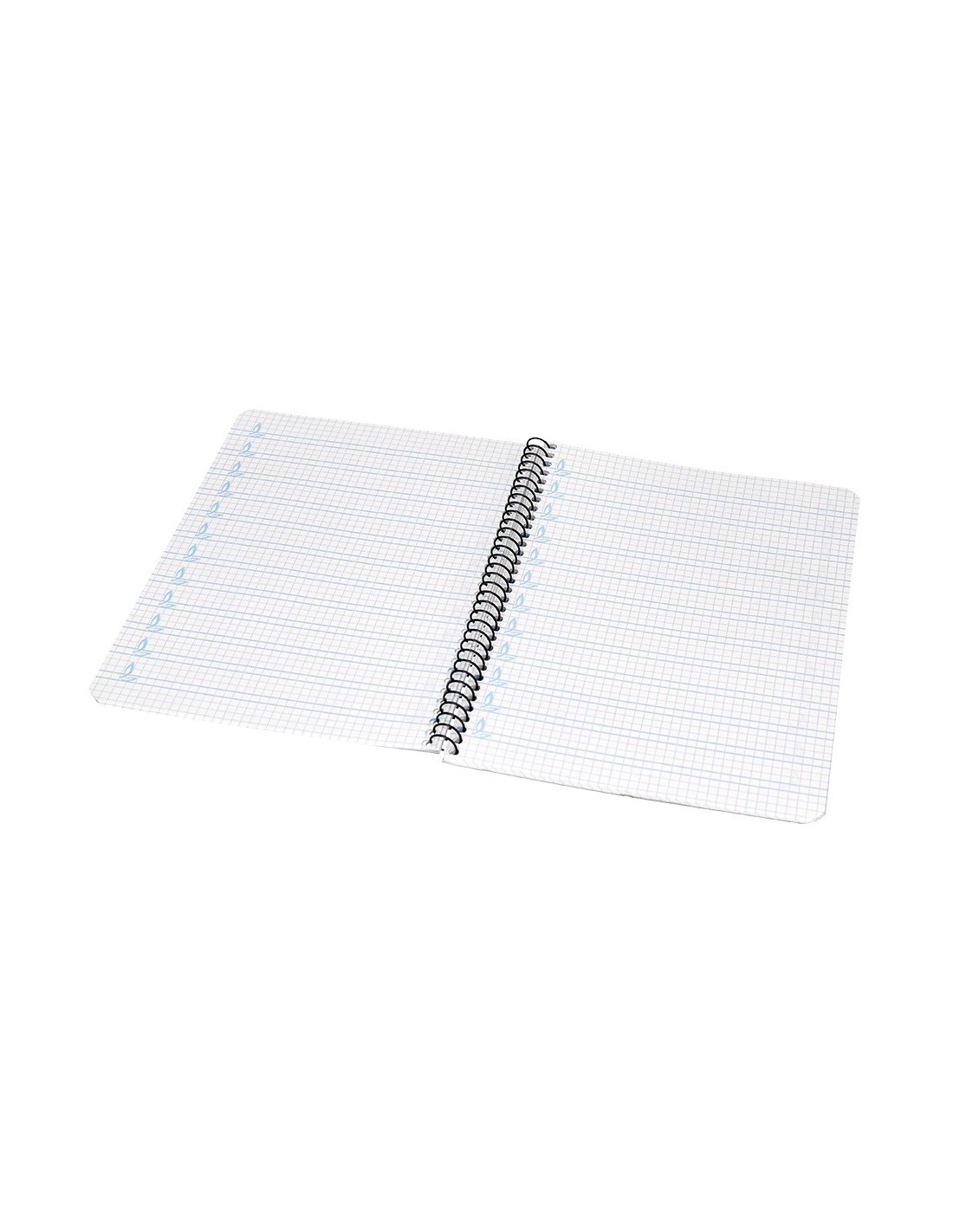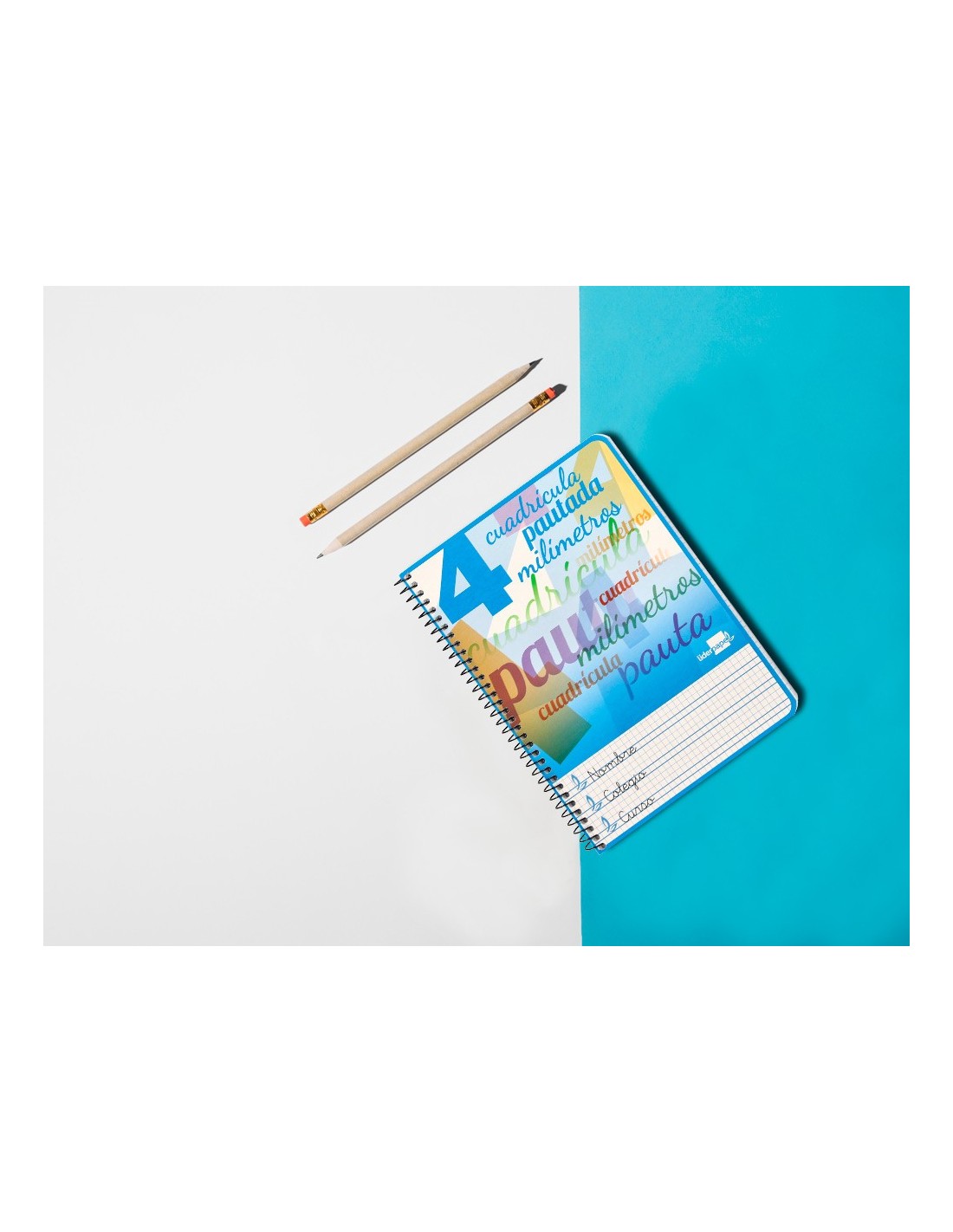 Tapa de cartoncillo impresa y plastificada brillo con relieve. Cuadrícula pautada en su interior que marca en cada línea el inicio de la escritura. Contratapa de cartoncillo. Papel de 80 g/m².