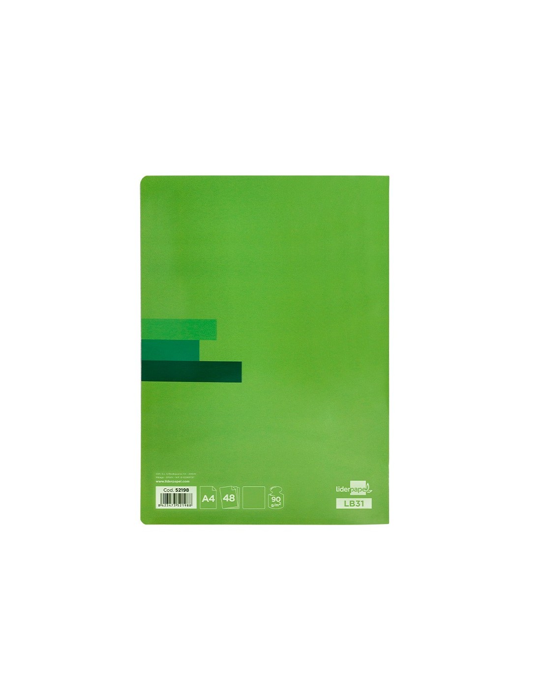 Tapa de papel estucado de 270 g/m² y plastificado brillo. 48 hojas. Papel 90 g/m² de óptima calidad. Muy resistente. No traspasa la tinta. Con margen. Colores surtidos.