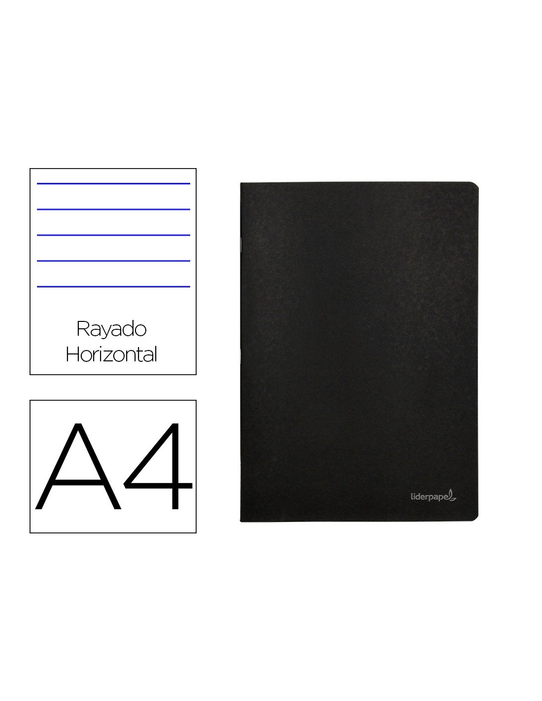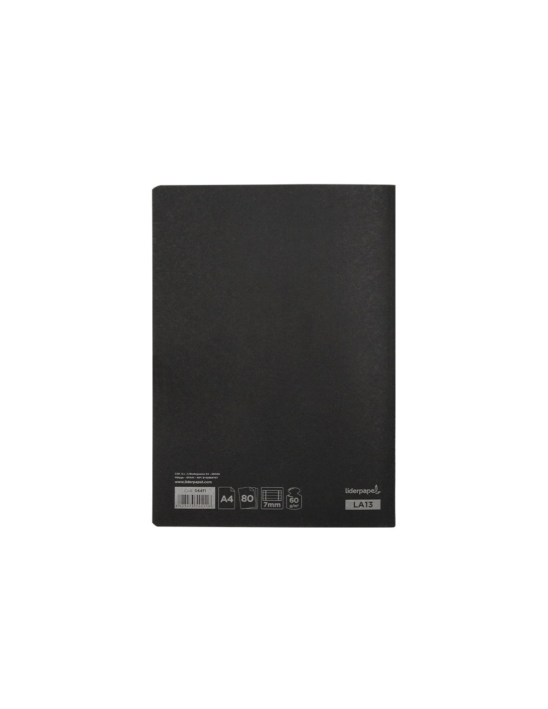 Fabricada en cartoncillo impreso y plastificado en polietileno. 80 hojas. Papel de 60 g/m². Color negro.
