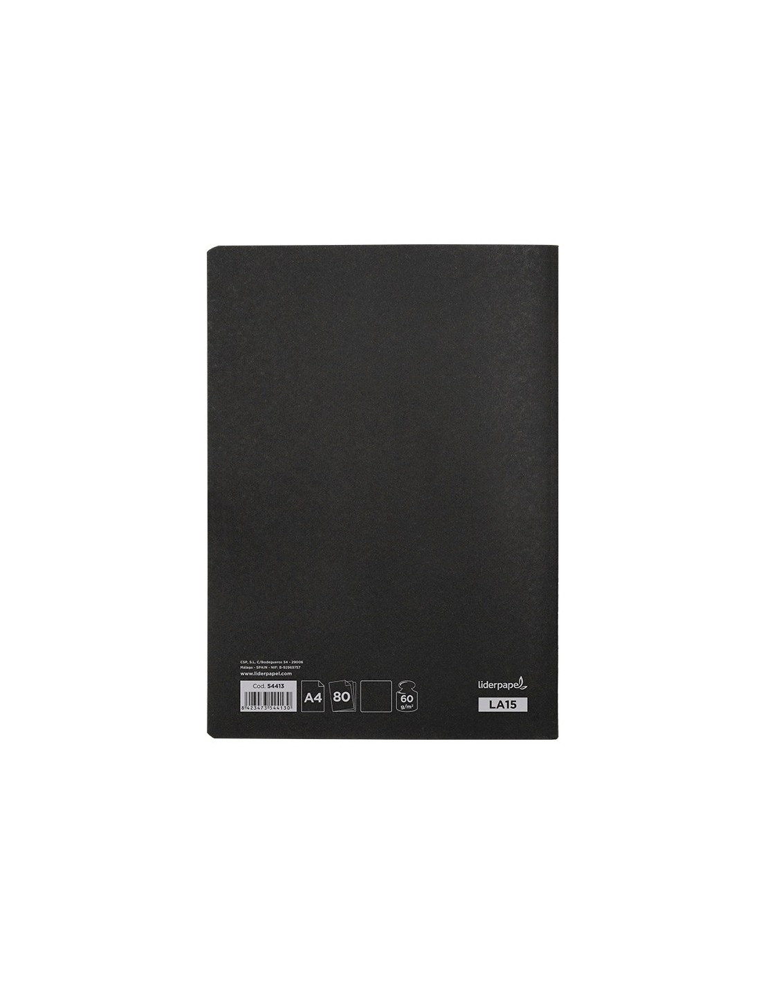 Fabricada en cartoncillo impreso y plastificado brillo. 80 hojas. Doble margen. Papel de 60 g/m². Color negro.