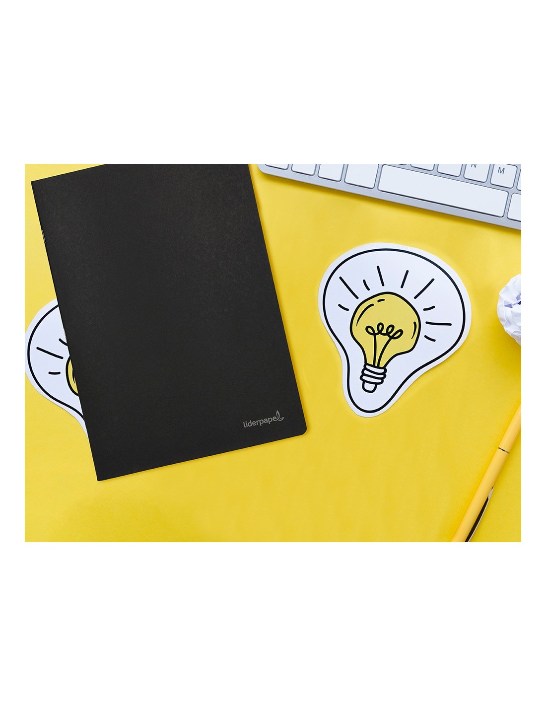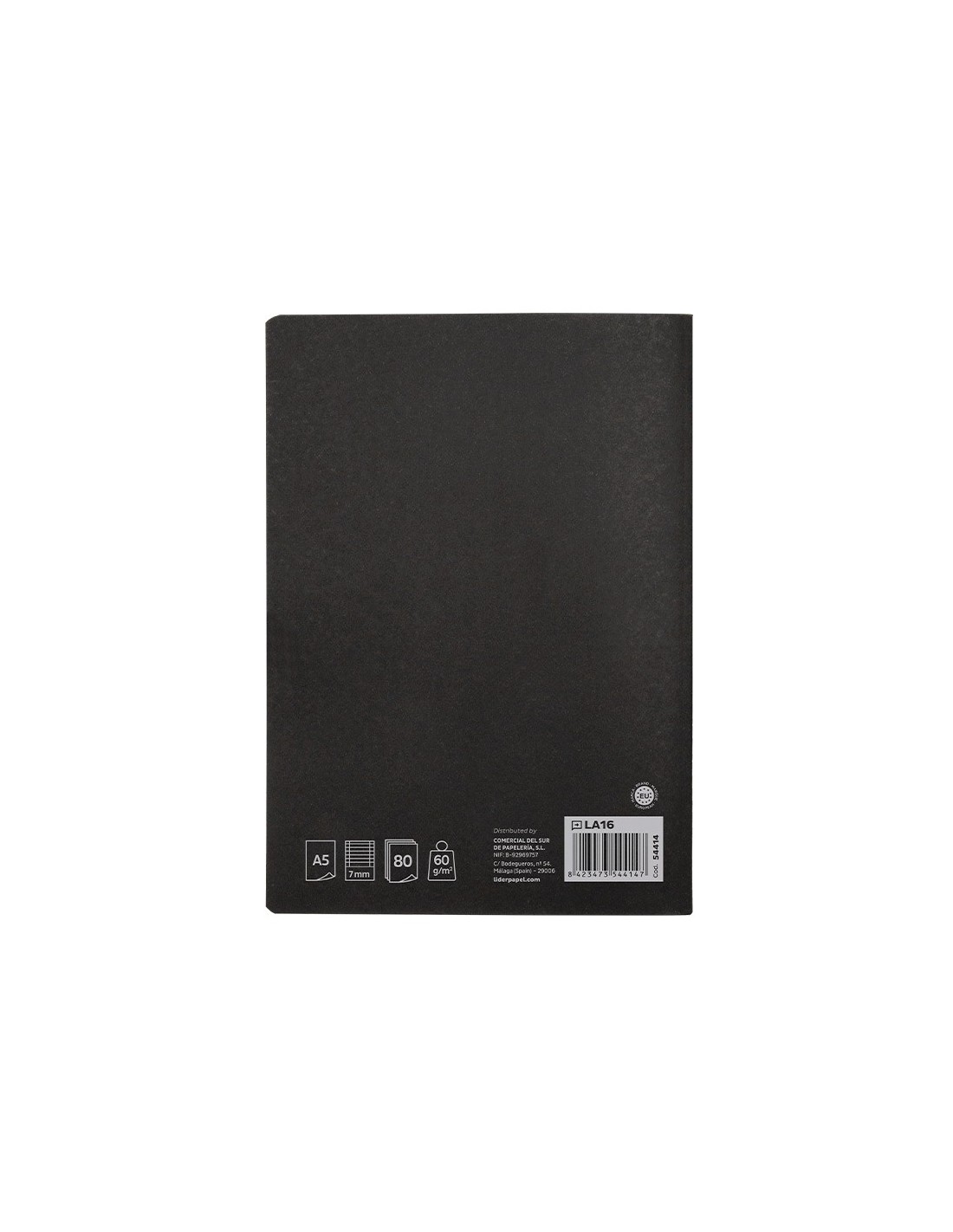 Fabricada en cartoncillo impreso y plastificado brillo. 80 hojas. Doble margen. Papel de 60 g/m². Color negro.