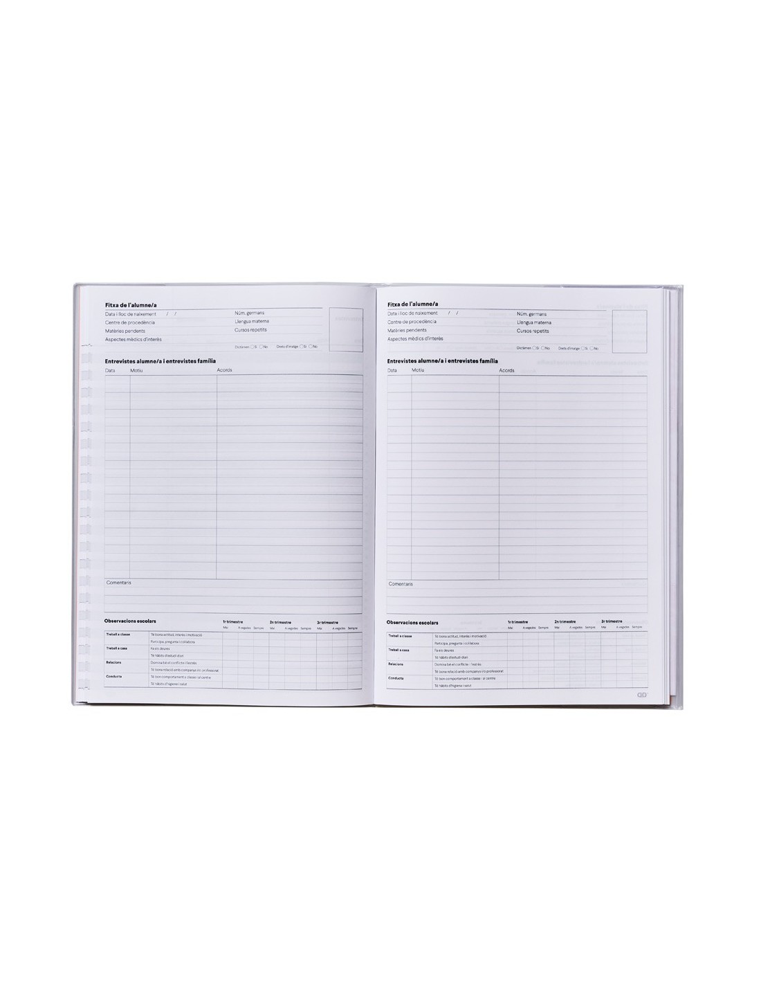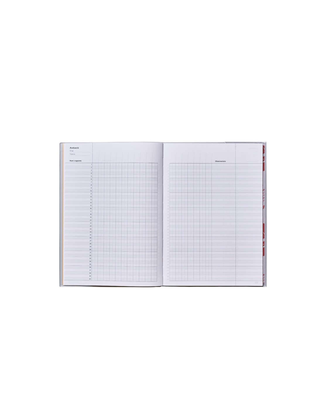 Bloc para la evaluación continua y la tutoría. Contenido: horarios, plano de la clase, evaluación continua, datos de los alumnos, faltas de asistencia, fichas individuales de los alumnos (40), organización semanal (40 semanas), resultados del grupo. Incluye funda con solapa multihendido para máxima carga de papeles, calendario de curso y etiquetas autoadhesivas para la lista de alumnos. Colores surtidos. Formato Din A4.