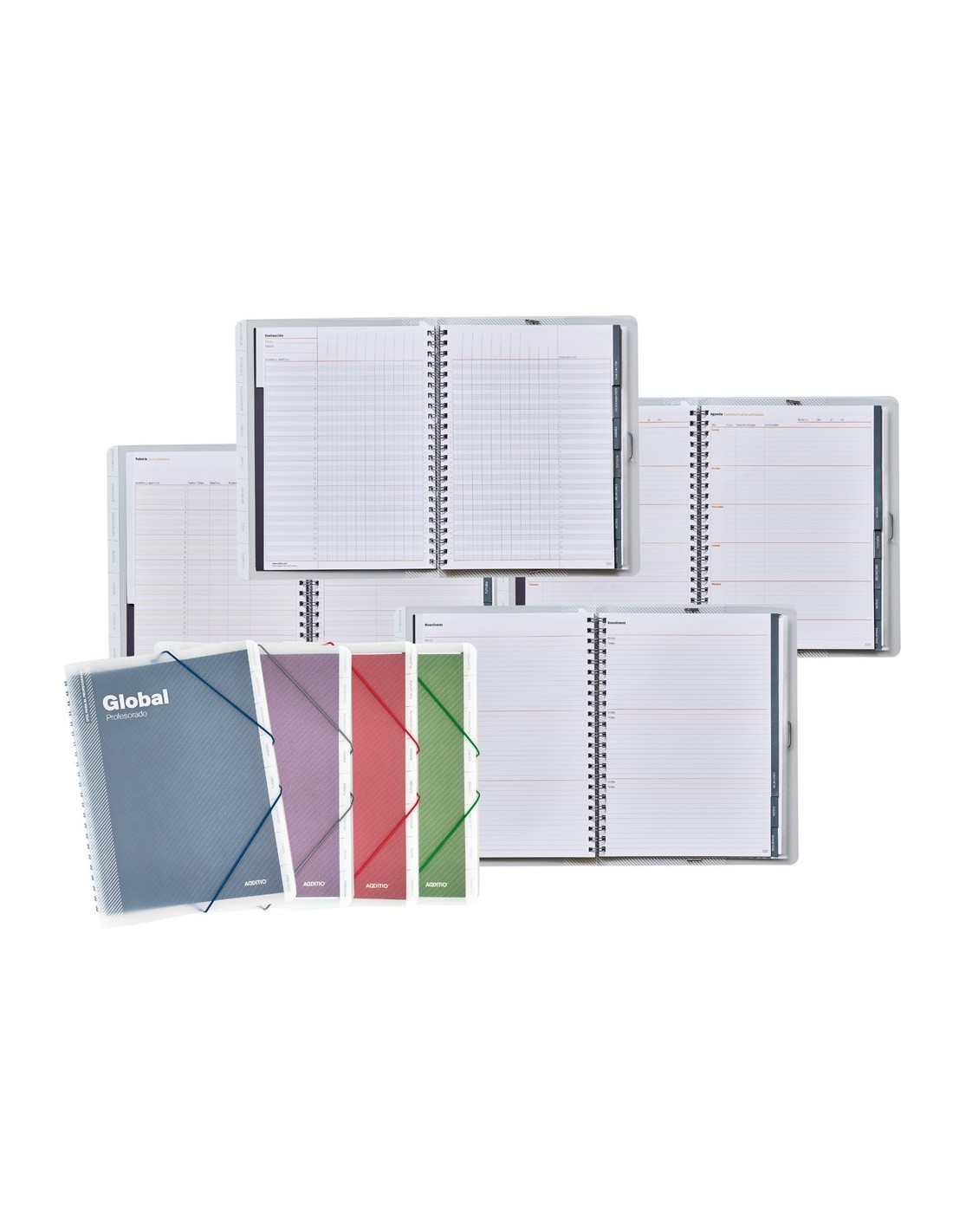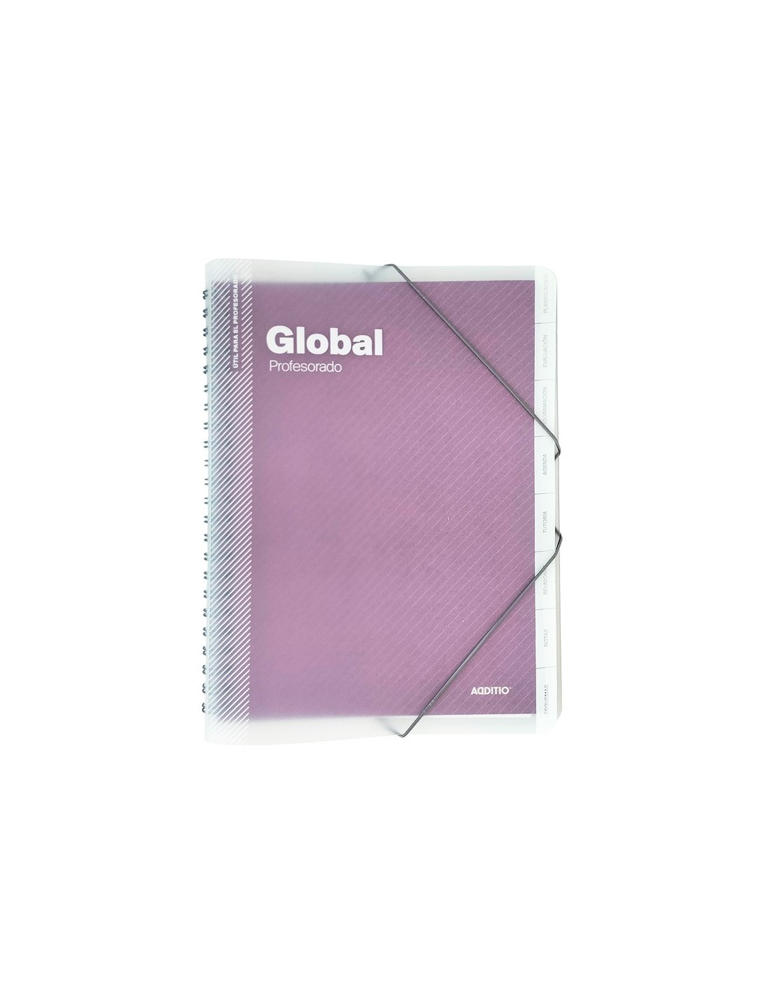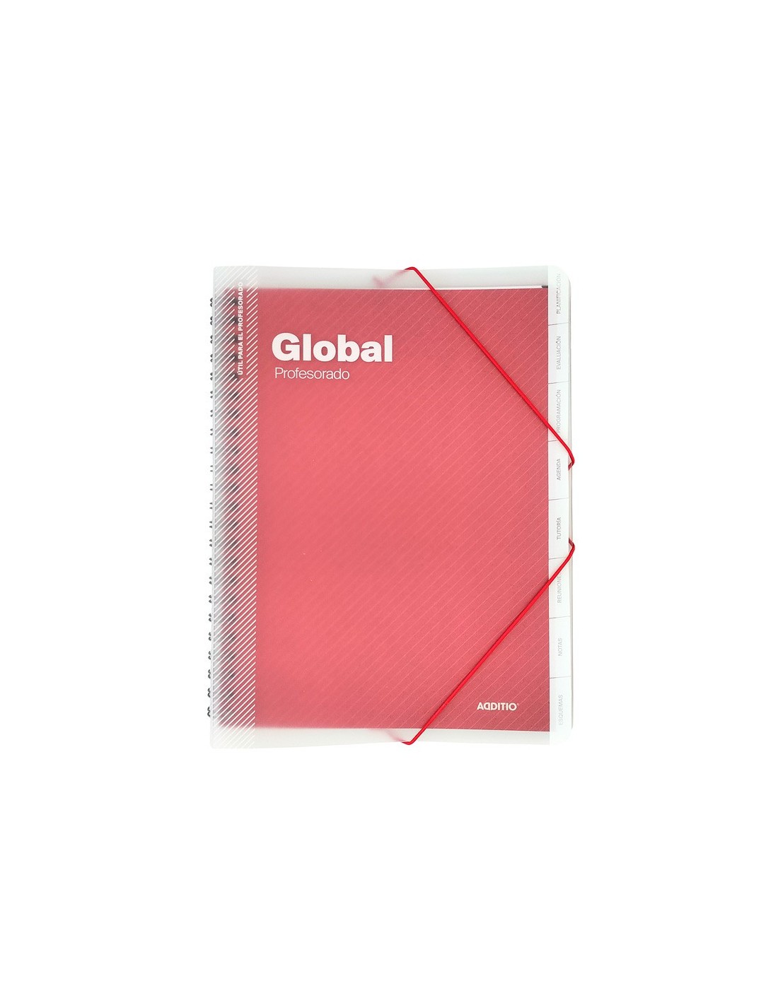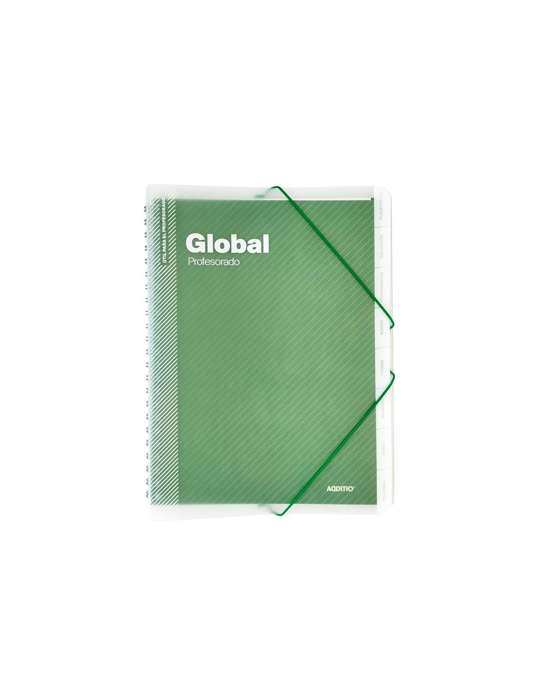 Carpeta con organización por pestañas. Contenido: datos personales y horario, planificación mensual, evaluación continua, registro de la programación, agenda (40 semanas), tutoría, reuniones. Con doble espiral, regla marca páginas, fundas de polipropileno y etiquetas autoadhesivas para la lista de alumnos. Tamaño 24 x 32 cm.