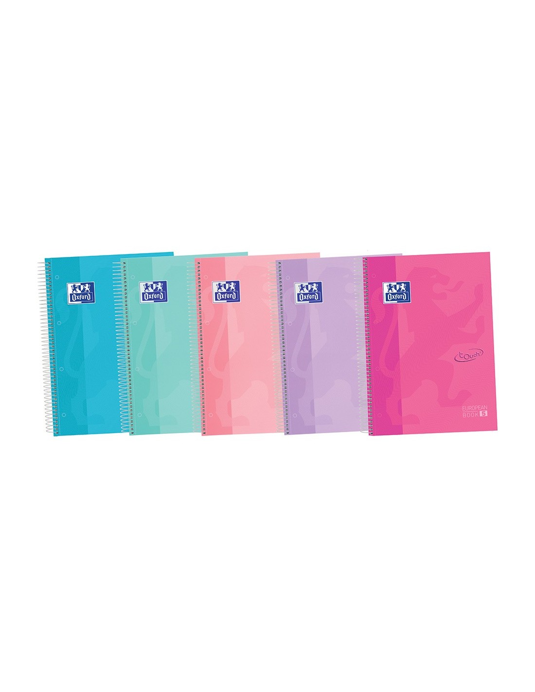 Tapa extradura con tacto suave. 120 hojas. Papel OPTIKPAPER+, extrablanco y satinado. Con un tacto suave y un acabado mate. Permite escribir por las dos caras. Microperforado. 5 colores de recuadro que permiten identificar rápidamente cada asignatura. Espiral simple a juego con el color de la tapa y el recuadro. Formato Din A4+. Colores surtidos.
