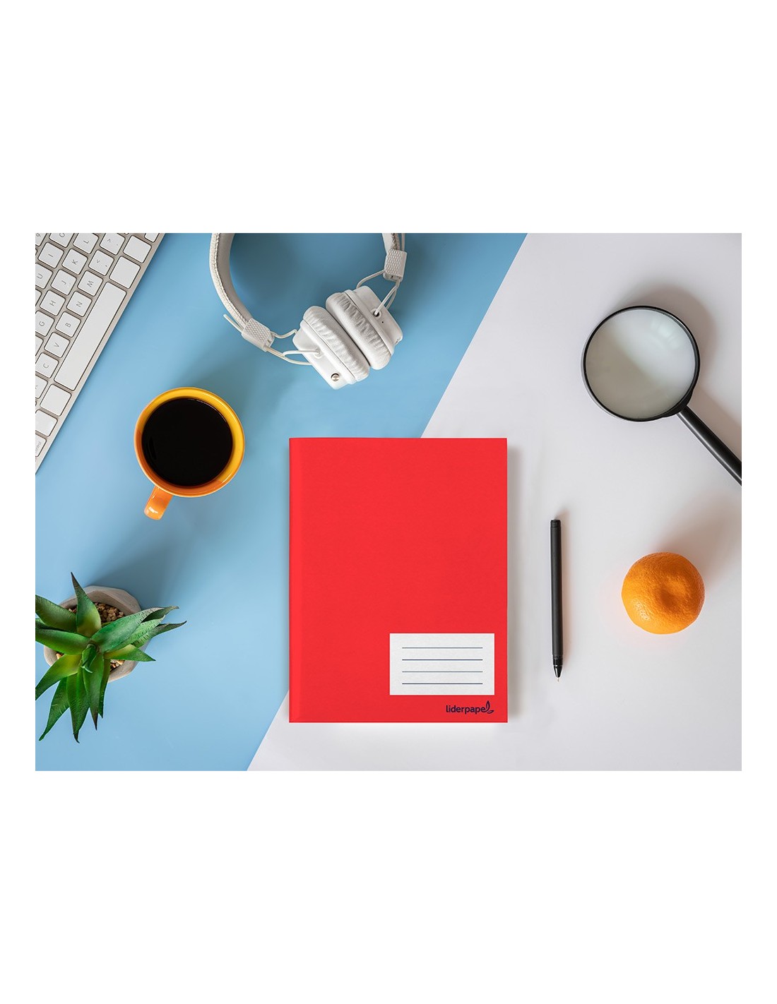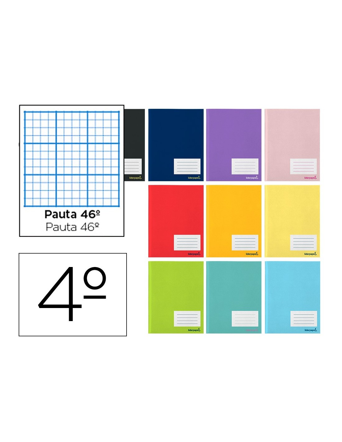 Tapa de 250 g/m² fabricada en cartoncillo impreso y plastificado brillo. Papel de 60 g/m². Contienen etiqueta en la portada para rellenar con datos. Con margen. Colores surtidos.