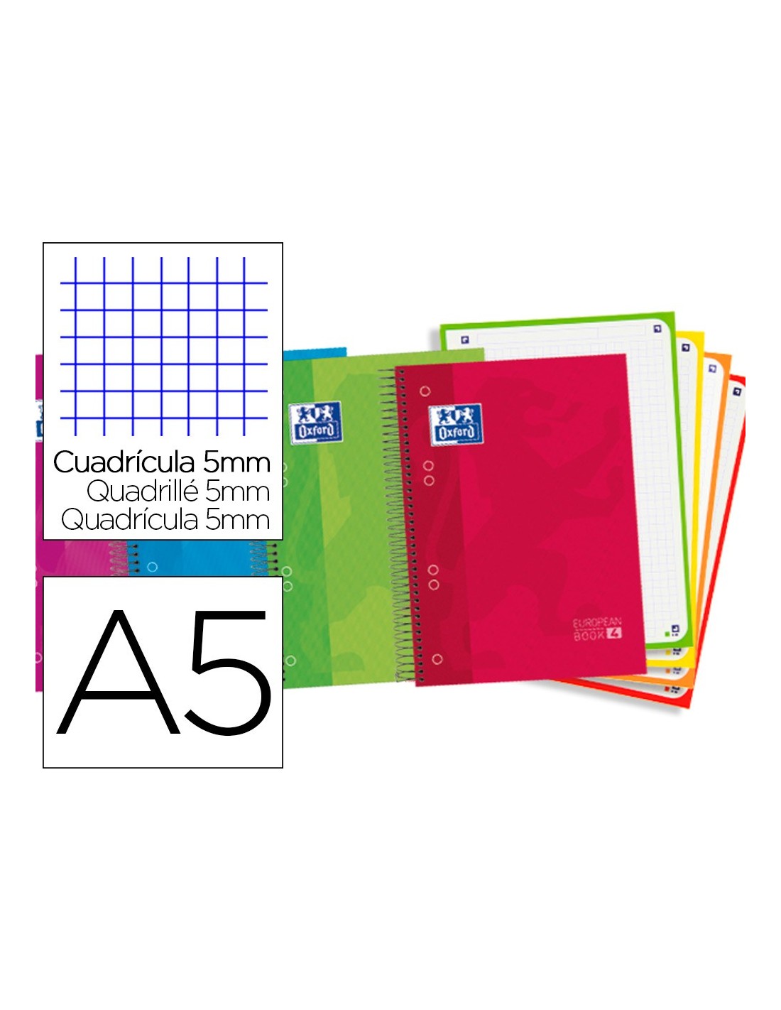 CUADERNO ESP. OXFORD A5 T.EXTRA 5MM 170H. 90GR. COL. SURT.