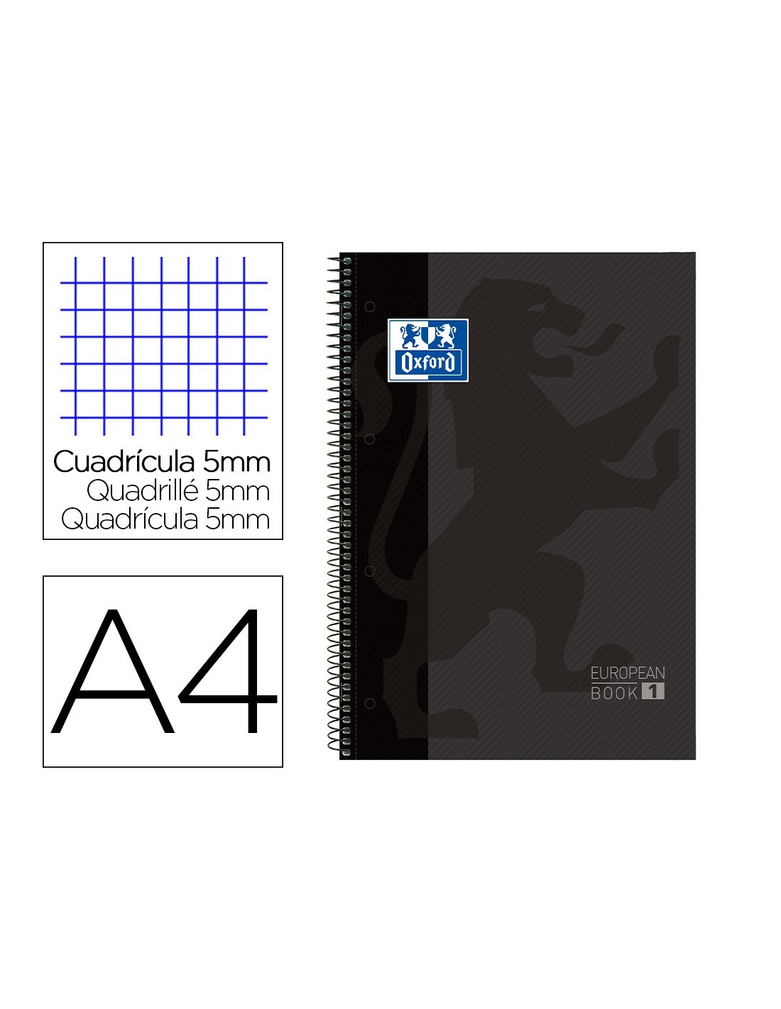 CUADERNO ESP. OXFORD EBOOK A4 T.EXTRA. 5MM 80H. GRIS