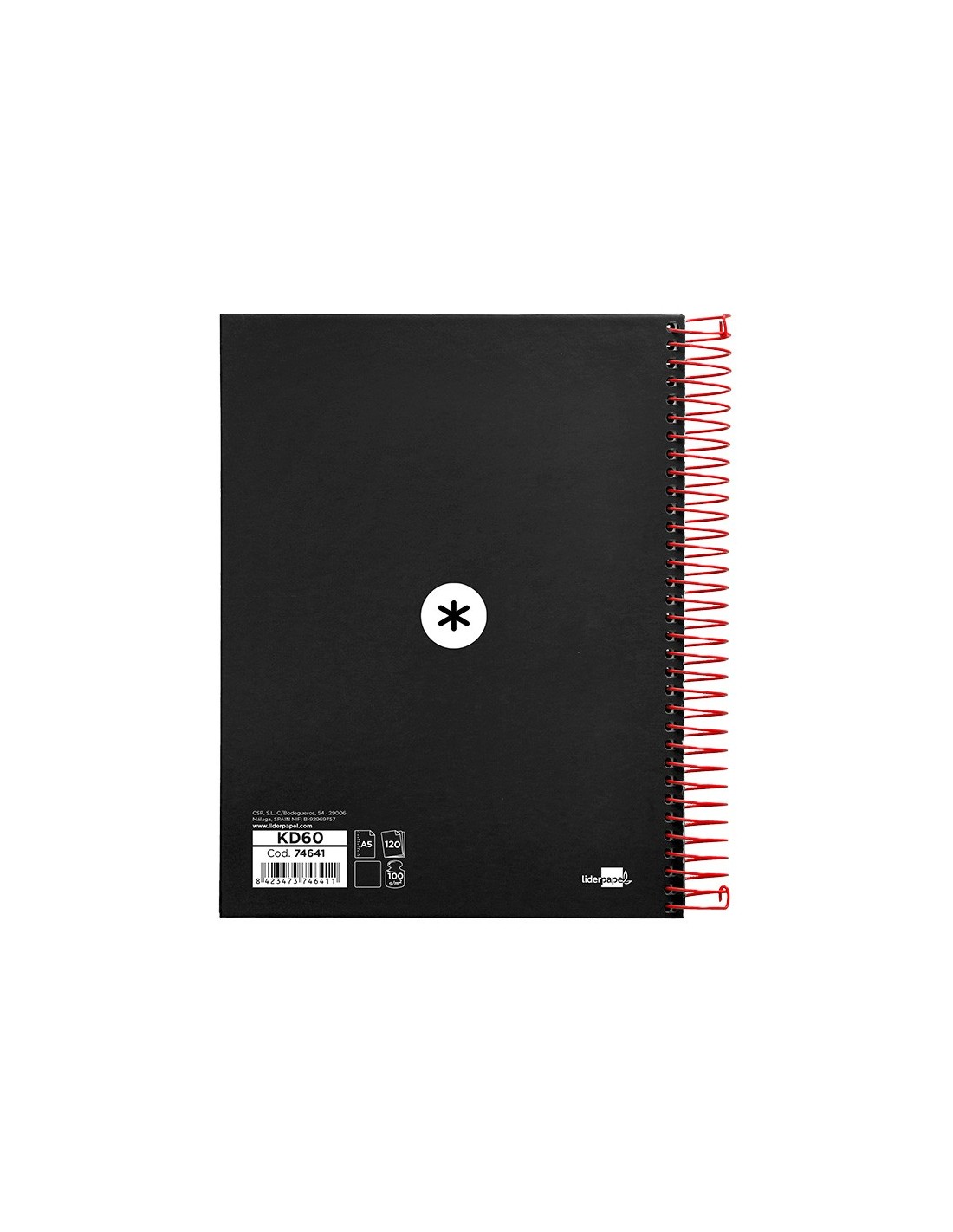 El cuaderno de más alta gama del mercado: exclusivo diseño, características inigualables, un cuaderno sin precedentes que se distingue por la suavidad y blancura de su papel, y además hace la escritura muy fluida. Tapa de cartón entrecolado de 1,5 mm de espesor, forrado a una cara con papel estucado mate extrasuave y reserva de barniz UVI. Guarda interior impresa. 100 y 120 hojas. Gran resistencia y rigidez. Papel extrablanco de 90 g/m², ultrasuave que hace la escritura mucho más fluida. La tinta no traspasa. 4 bandas de colores (formato A6) y 5 bandas de colores (formatos A5 y A4). Espiral nylonizada de colores. Coil-lock.