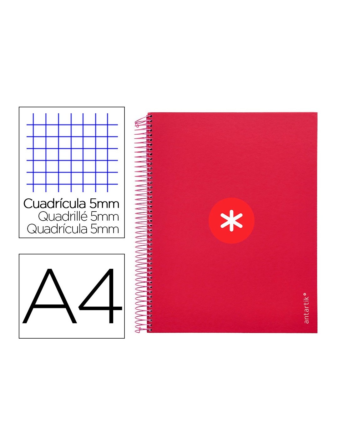 CUADERNO ESP. ANTARTIK A4 T.FORRADA MICRO 5MM 5B 4T.120H 100GR.FRAMB