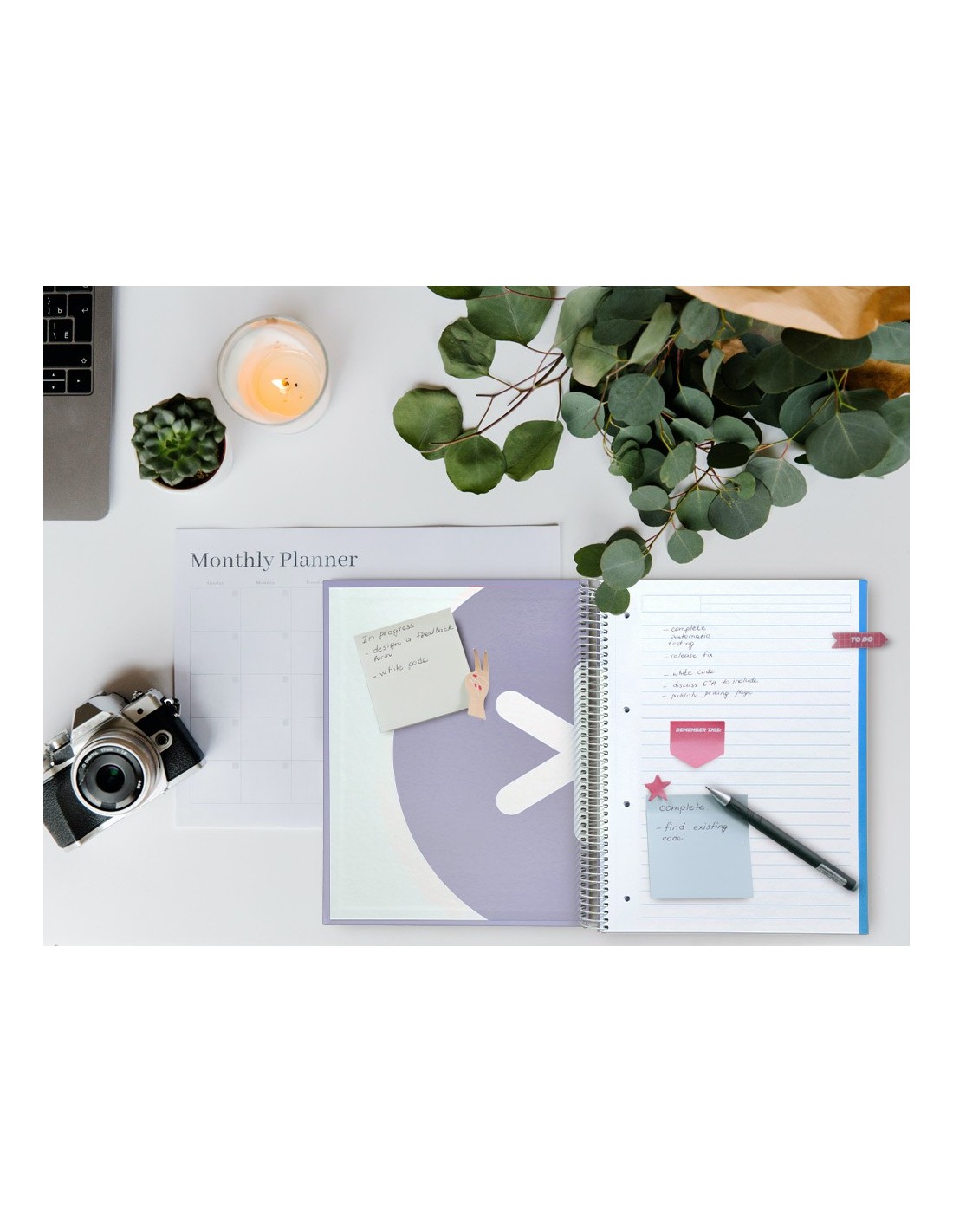 El cuaderno de más alta gama del mercado: exclusivo diseño, características inigualables, un cuaderno sin precedentes que se distingue por la suavidad y blancura de su papel, y además hace la escritura muy fluida. Tapa de cartón entrecolado de 1,5 mm de espesor, forrado a una cara con papel estucado mate extrasuave y reserva de barniz UVI. Guarda interior impresa. 100 y 120 hojas. Gran resistencia y rigidez. Papel extrablanco de 90 g/m², u ltrasuave que hace la escritura mucho más fluida. La tinta no traspasa. 4 bandas de colores (formato A6) y 5 bandas de colores (formatos A5 y A4). Espiral nylonizada de colores. Coil-lock.