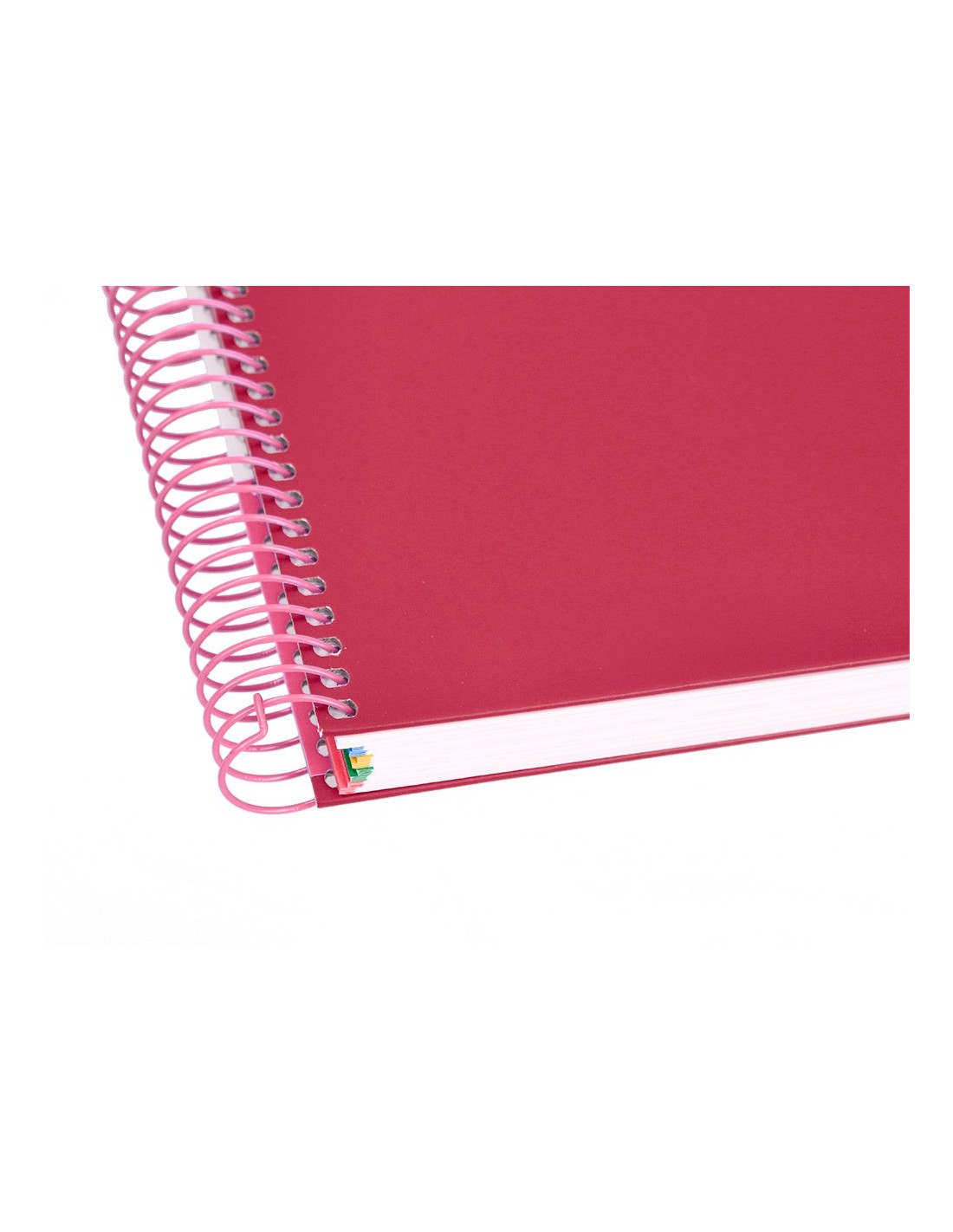 El cuaderno de más alta gama del mercado: exclusivo diseño, características inigualables, un cuaderno sin precedentes que se distingue por la suavidad y blancura de su papel, y además hace la escritura muy fluida. Tapa de cartón entrecolado de 1,5 mm de espesor, forrado a una cara con papel estucado mate extrasuave y reserva de barniz UVI. Guarda interior impresa. 100 y 120 hojas. Gran resistencia y rigidez. Papel extrablanco de 90 g/m², ultrasuave que hace la escritura mucho más fluida. La tinta no traspasa. 4 bandas de colores (formato A6) y 5 bandas de colores (formatos A5 y A4). Espiral nylonizada de colores. Coil-lock.