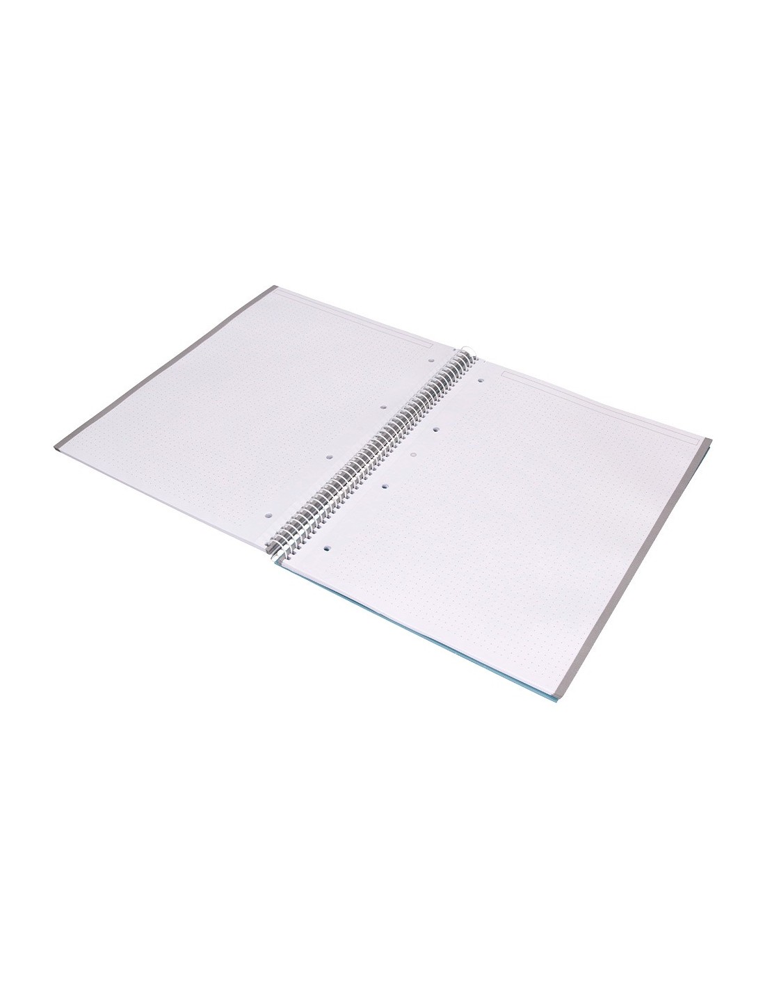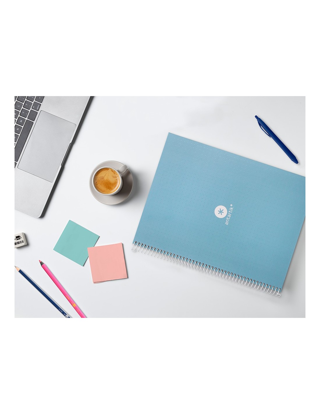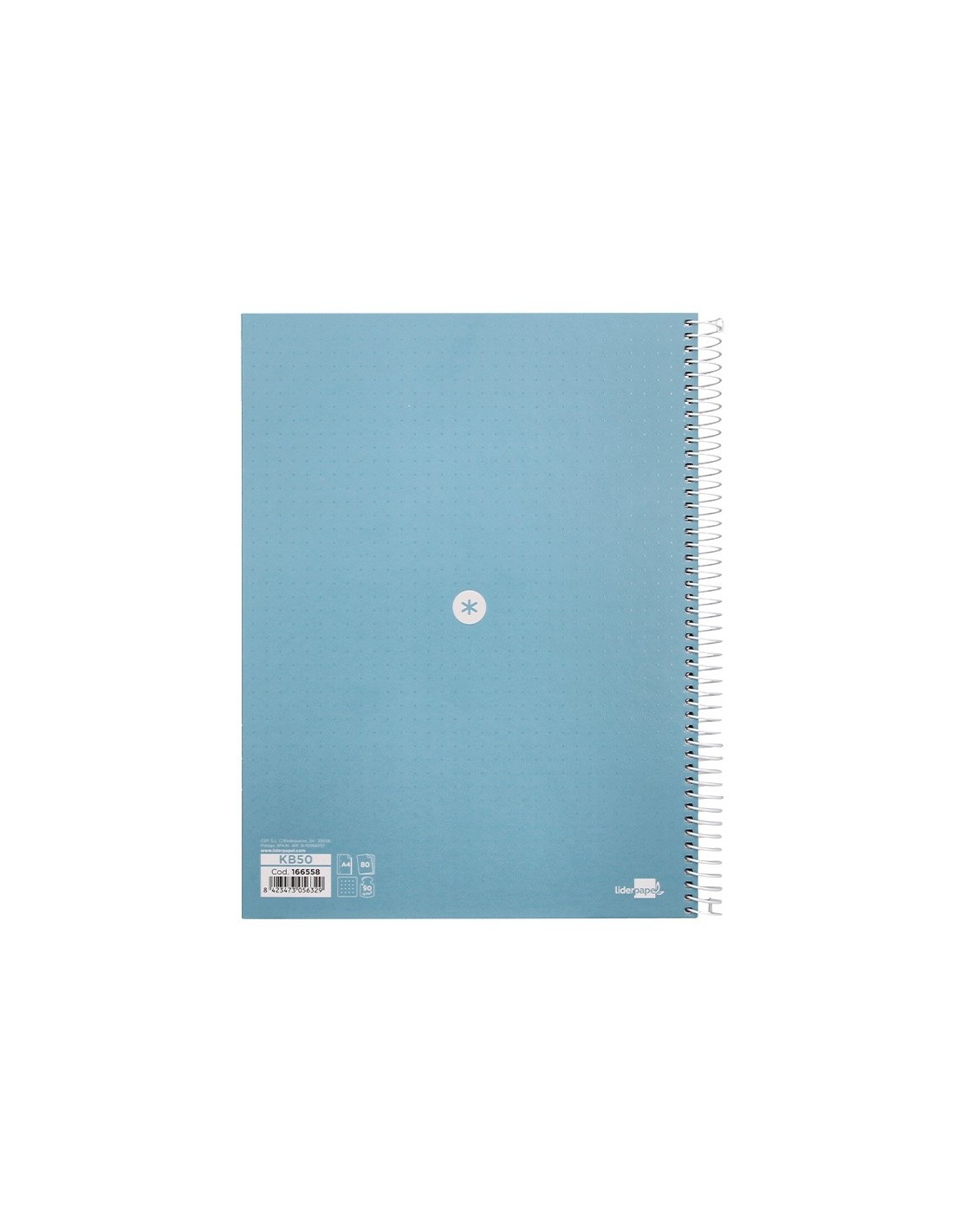 EL CUADERNO DE MÁS ALTA GAMA DEL MERCADO: EXCLUSIVO DISEÑO, CARACTERÍSTICAS INIGUALABLES, UN CUADERNO SIN PRECEDENTES QUE SE DISTINGUE POR LA SUAVIDAD Y BLANCURA DE SU PAPEL. TAPA DE CARTÓN ENTRECOLADO DE 1,5 MM DE ESPESOR, FORRADO A UNA CARA CON PAPEL ESTUCADO MATE EXTRASUAVE Y RESERVA DE BARNIZ UVI. GUARDA INTERIOR IMPRESA. 80 HOJAS DE GRAN RESISTENCIA Y RIGIDEZ. PAPEL EXTRABLANCO DE 90 G/M2, ULTRASUAVE QUE HACE LA ESCRITURA MUCHO MÁS FLUIDA. LA TINTA NO TRASPASA. BANDA DE COLOR. FORMATO DIN A4. MICROPERFORADO.ESPIRAL NYLONIZADA DE COLORES. COIL-LOCK. COLOR CELESTE. INTERIOR IMPRESOEN SUAVES PUNTOS GRISES EQUIDISTANTES 5MM ENTRE SI QUE PERMITEN SER UNA PERFECTA GUIA SIN DESTACAR. IDEAL PARA HACER BOCETOS, DIBUJAR, TOMAR APUNTES O HACER GRAFICOS.