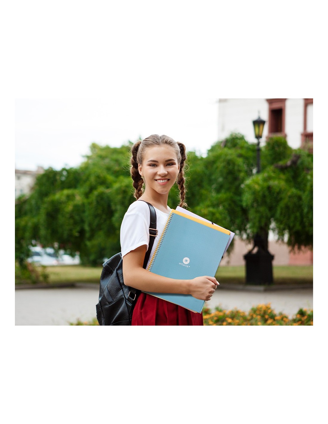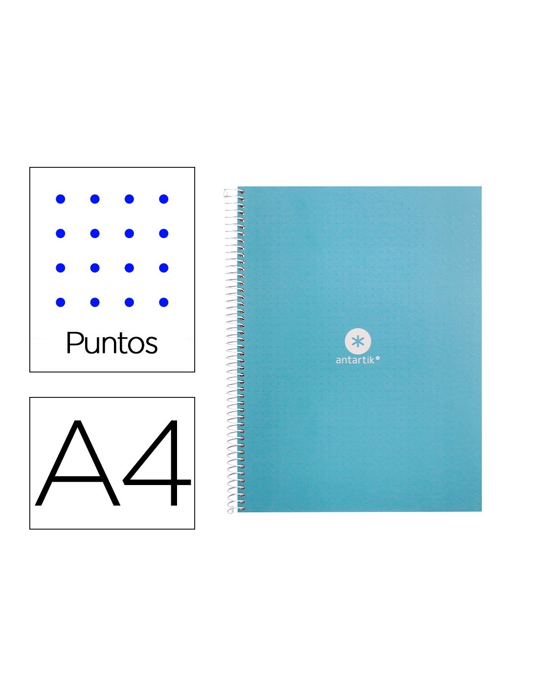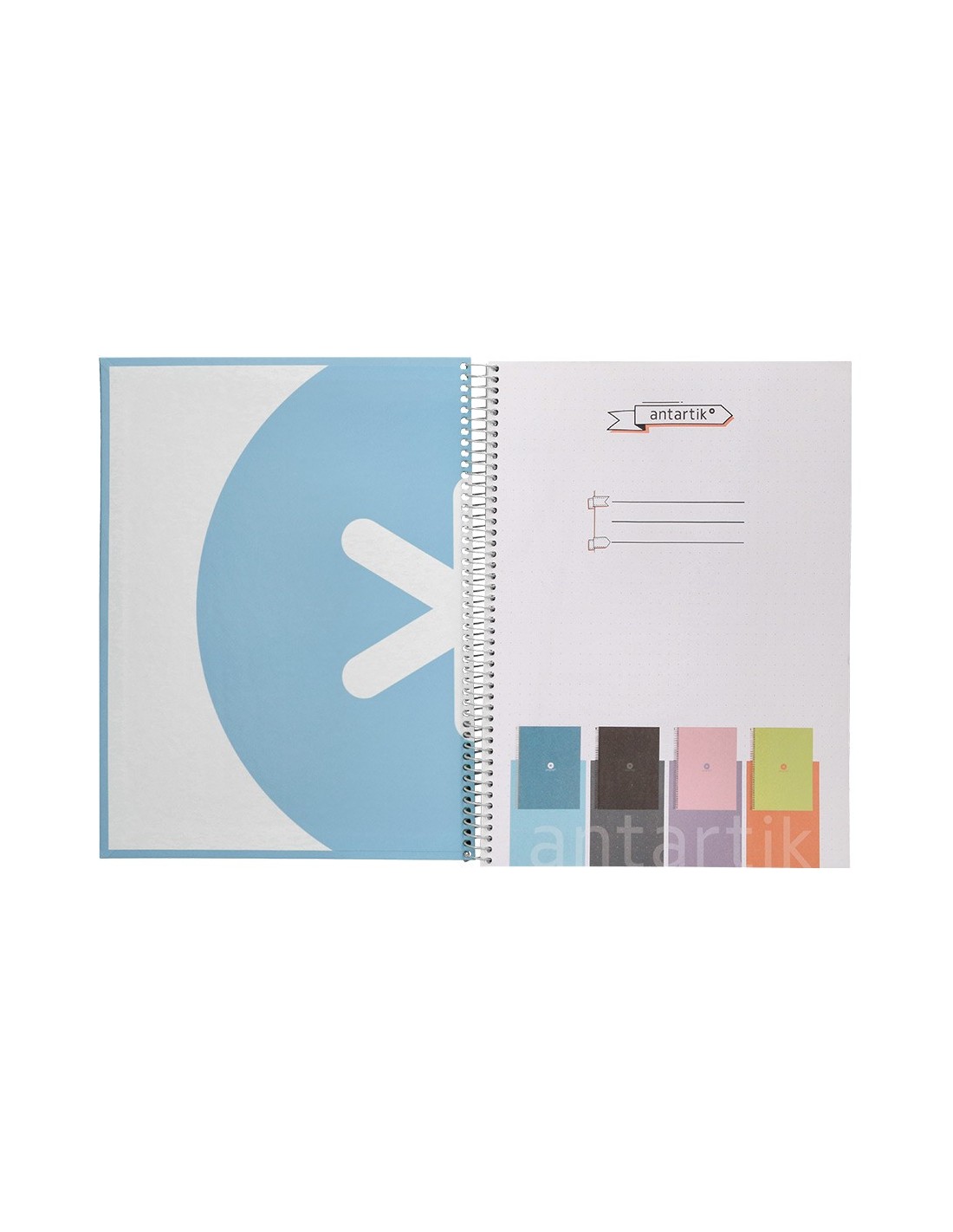 EL CUADERNO DE MÁS ALTA GAMA DEL MERCADO: EXCLUSIVO DISEÑO, CARACTERÍSTICAS INIGUALABLES, UN CUADERNO SIN PRECEDENTES QUE SE DISTINGUE POR LA SUAVIDAD Y BLANCURA DE SU PAPEL. TAPA DE CARTÓN ENTRECOLADO DE 1,5 MM DE ESPESOR, FORRADO A UNA CARA CON PAPEL ESTUCADO MATE EXTRASUAVE Y RESERVA DE BARNIZ UVI. GUARDA INTERIOR IMPRESA. 80 HOJAS DE GRAN RESISTENCIA Y RIGIDEZ. PAPEL EXTRABLANCO DE 90 G/M2, ULTRASUAVE QUE HACE LA ESCRITURA MUCHO MÁS FLUIDA. LA TINTA NO TRASPASA. BANDA DE COLOR. FORMATO DIN A4. MICROPERFORADO.ESPIRAL NYLONIZADA DE COLORES. COIL-LOCK. COLOR CELESTE. INTERIOR IMPRESOEN SUAVES PUNTOS GRISES EQUIDISTANTES 5MM ENTRE SI QUE PERMITEN SER UNA PERFECTA GUIA SIN DESTACAR. IDEAL PARA HACER BOCETOS, DIBUJAR, TOMAR APUNTES O HACER GRAFICOS.