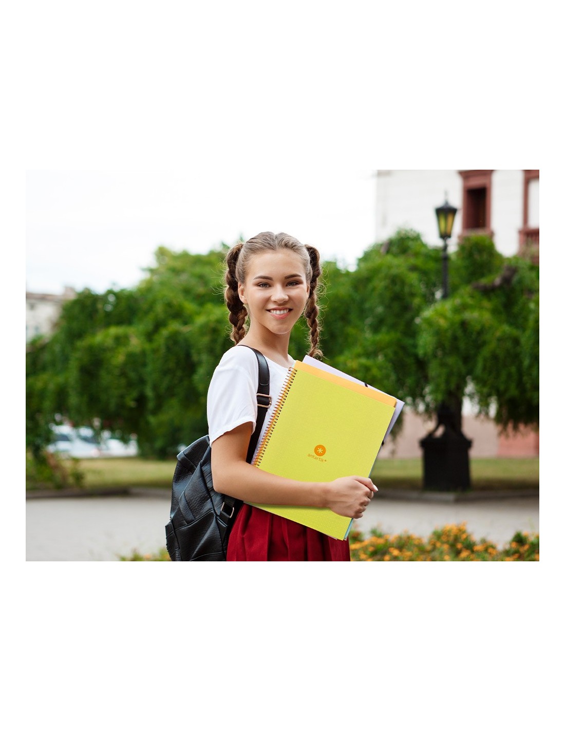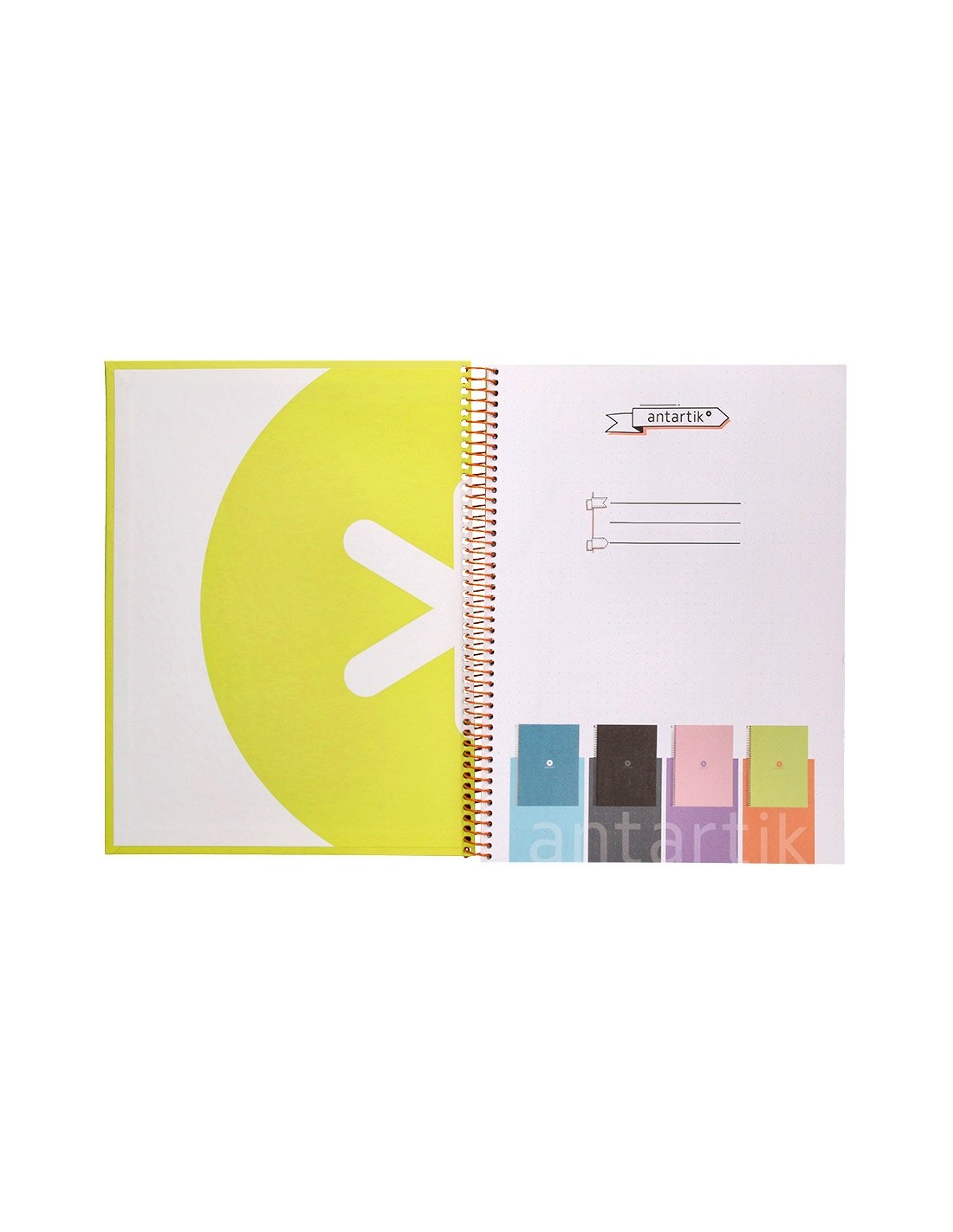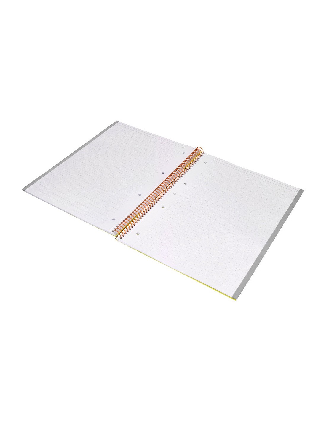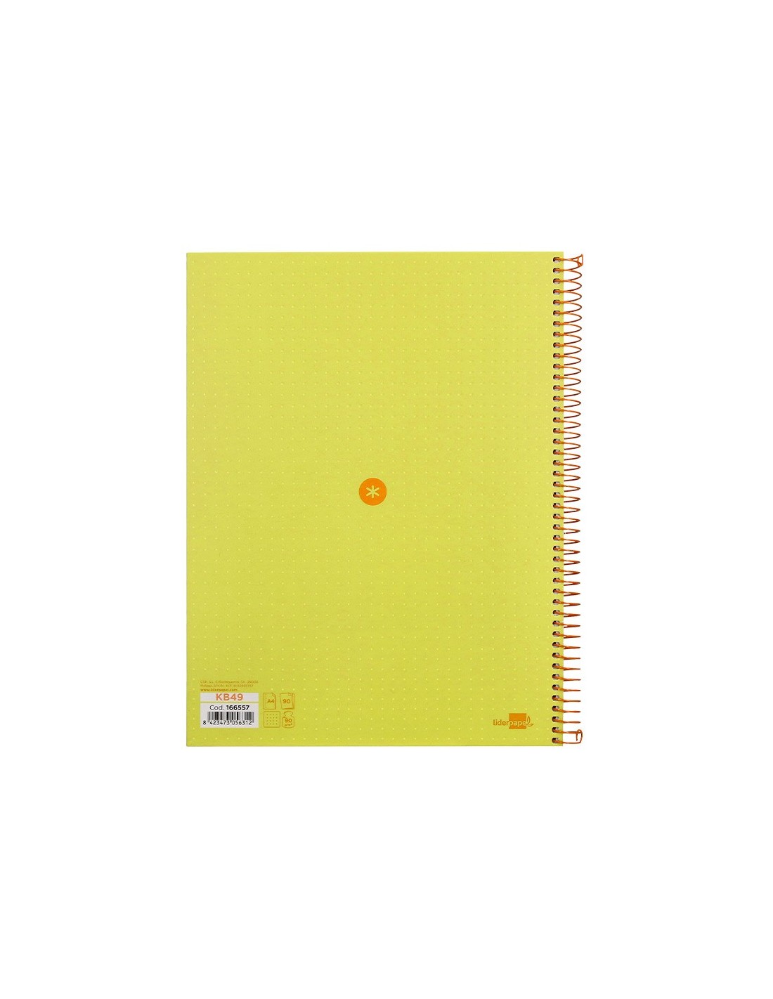El cuaderno de más alta gama del mercado: exclusivo diseño, características inigualables, un cuaderno sin precedentes que se distingue por la suavidad y blancura de su papel. Tapa de cartón entrecolado de 1,5 mm de espesor, forrado a una cara con papel estucado mate extrasuave y reserva de barniz uvi. Guarda interior impresa. 80 hojas de gran resistencia y rigidez. Papel extrablanco de 90 g/m2, ultrasuave que hace la escritura mucho más fluida. La tinta no traspasa. Banda de color. Formato Din A4. Microperforado.Espiral nylonizada de colores. Coil-lock. Color Amarillo. INTERIOR IMPRESO EN SUAVES PUNTOS GRISES EQUIDISTANTES 5MM ENTRE SI QUE PERMITEN SER UNA PERFECTA GUIA SIN DESTACAR. IDEAL PARA HACER BOCETOS, DIBUJAR, TOMAR APUNTES O HACER GRAFICOS.