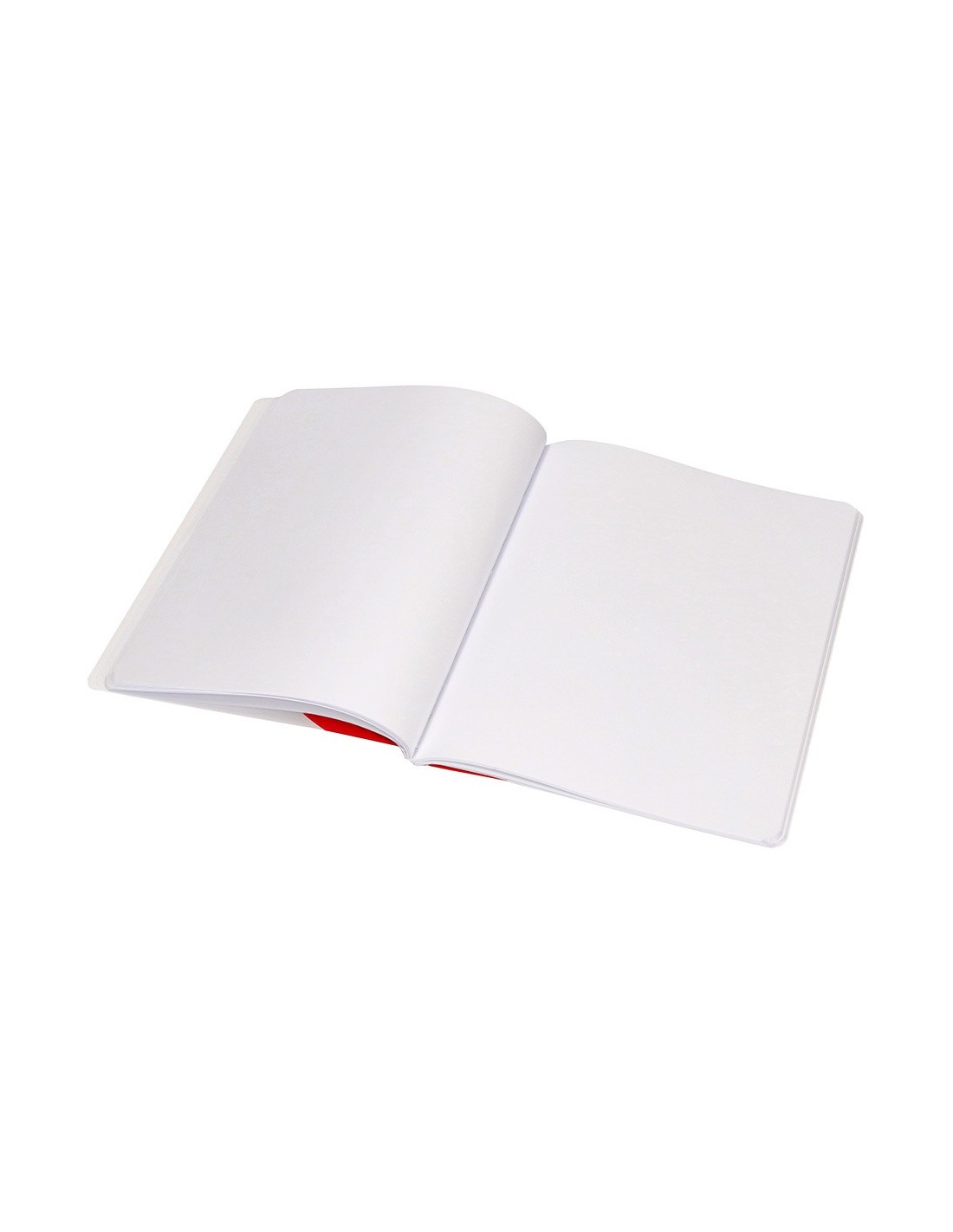 Libreta cosida con tapa de papel estucado impreso de 350 g/m² y plastificado en polietileno mate antiroce con reserva brillo. Formato Din A5+. 48 hojas. Papel extrablanco de 90 g/m² ultrasuave, hace la escritura mucha más fluida. La tinta no traspasa. Liso. Con margen. Colores surtidos.