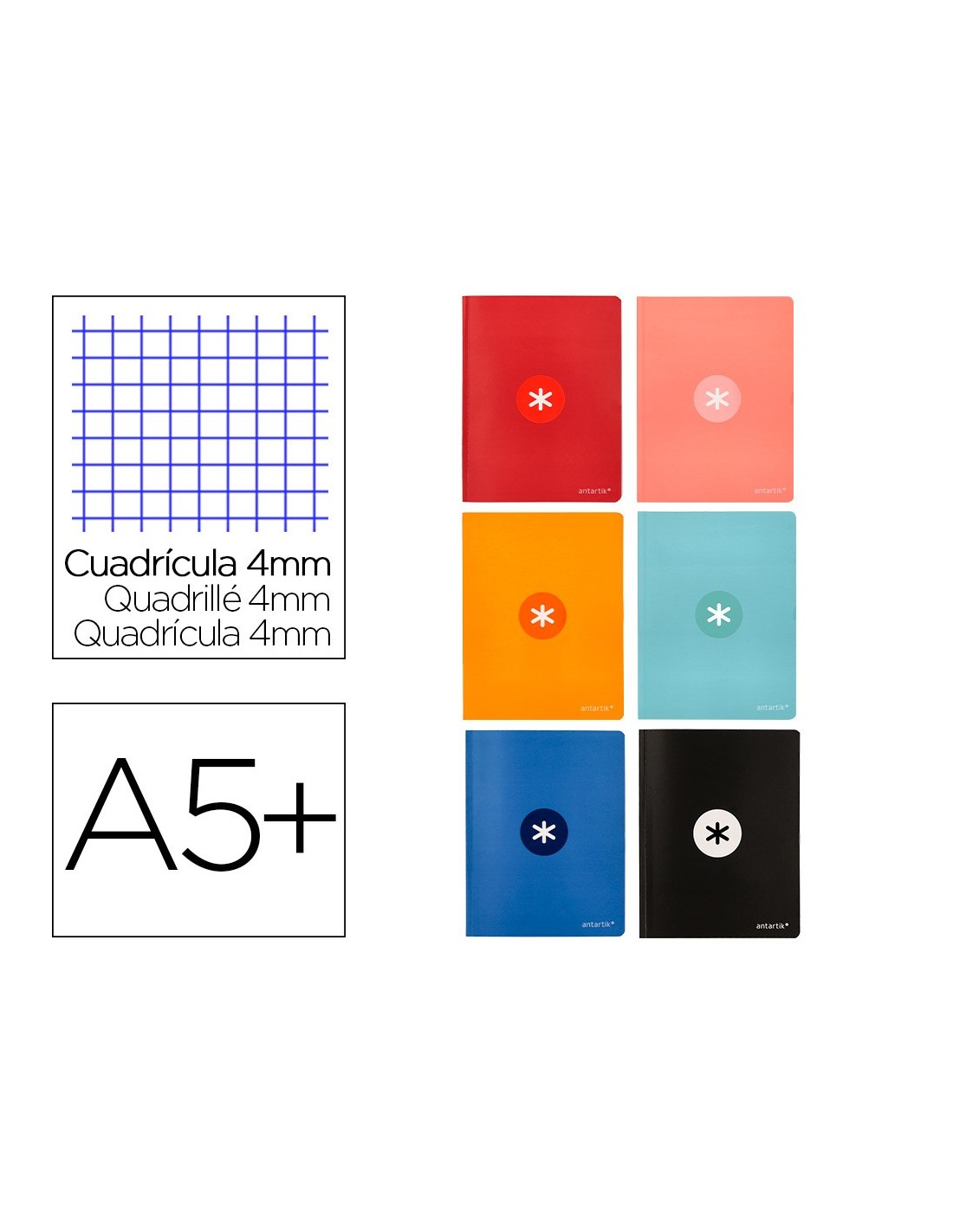CUADERNO ANTARTIK A5+ PLUS COSIDA 48H. 90G/M2 4MM MARGEN 6 SURT.