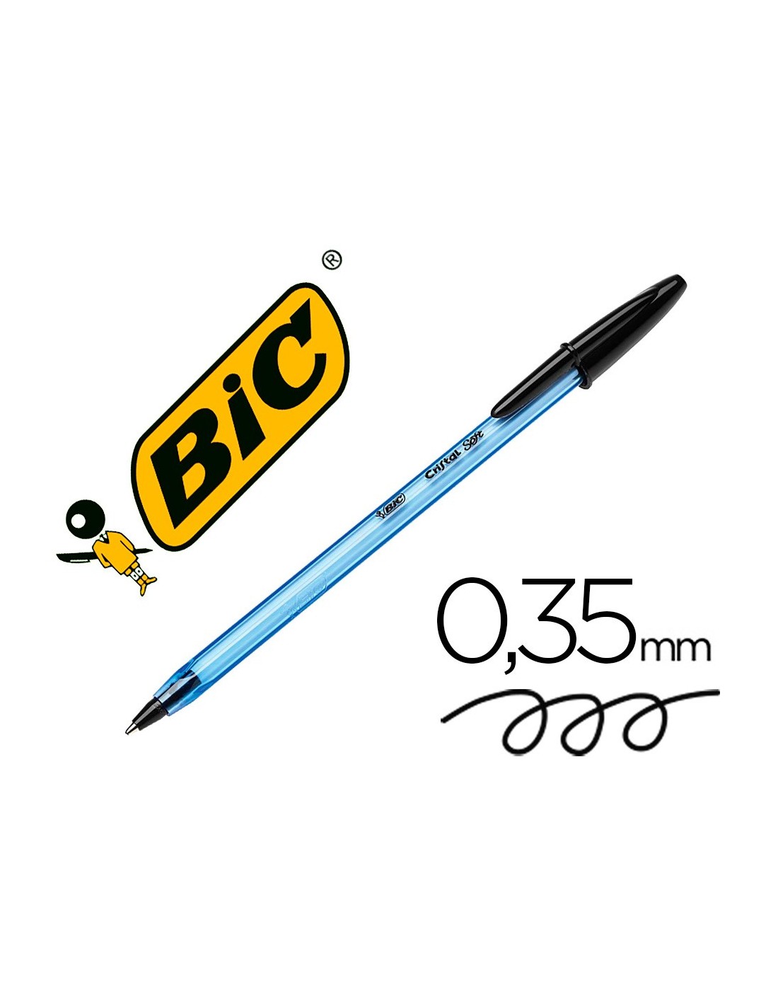 Bolígrafo con tinta más suave gracias al sistema de tinta Easy Glide que aporta un 35% más de suavidad en la escritura. Tinta a base de aceite. Cuerpo transparente en azul claro. Tapón y capuchón del color de la tinta. Punta cónica gruesa 1,2 mm. Trazo: 0,35 m.