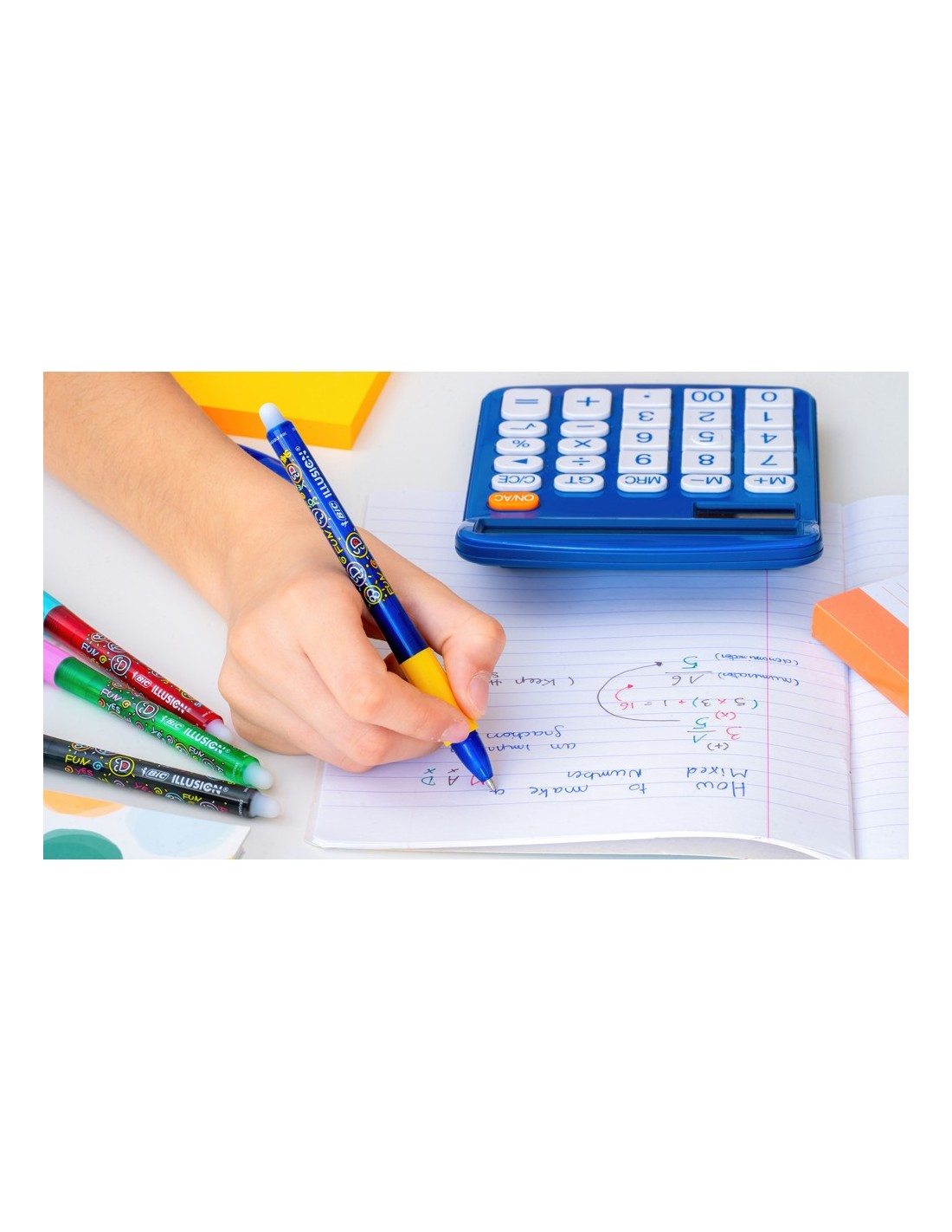 Bolígrafo con tinta de gel. Tinta borrable con tecnología termosensible. Escritura suave y cómodo grip de goma. Punta 0,7 mm y trazo 0,35 mm.