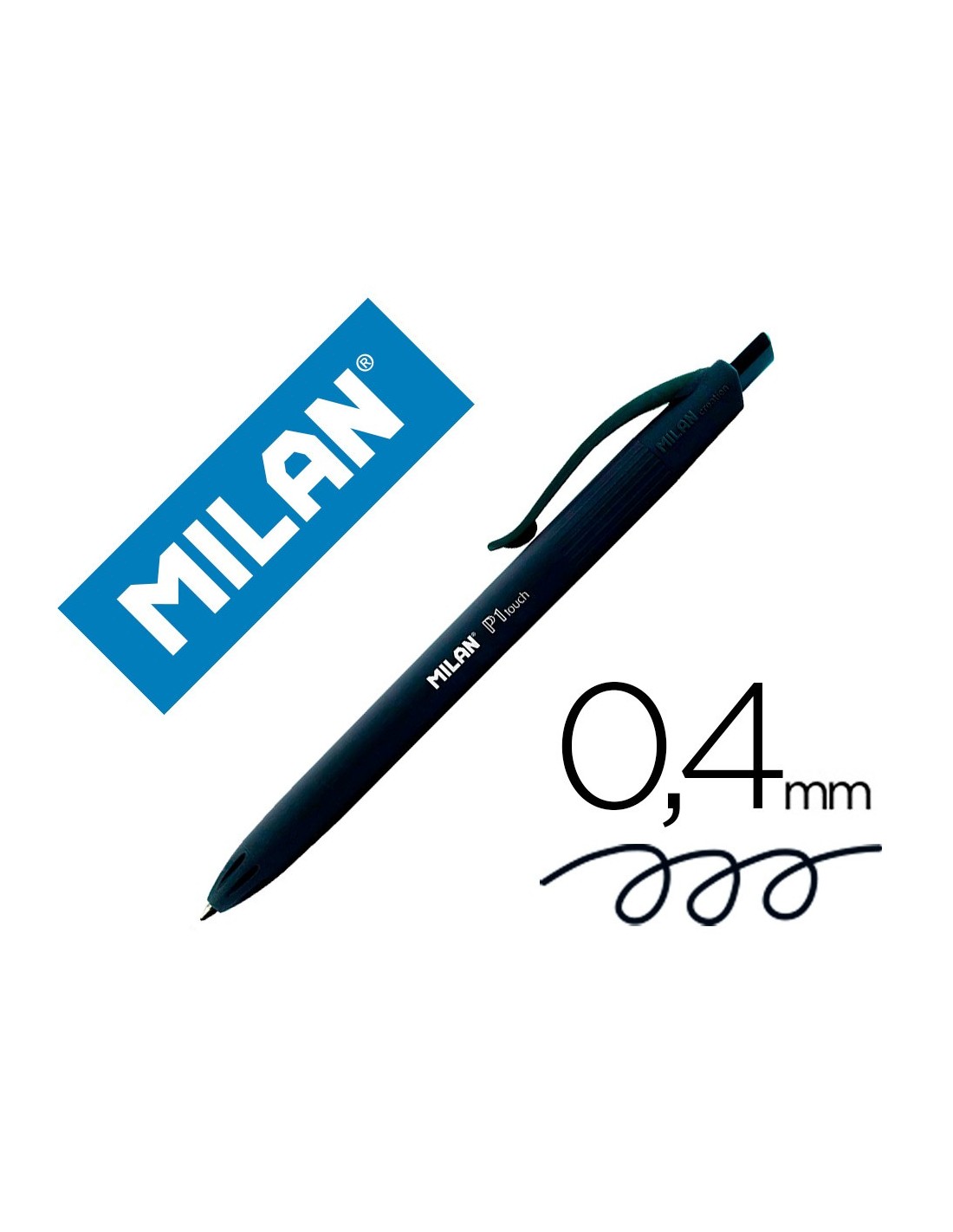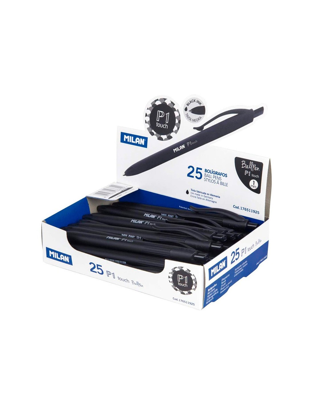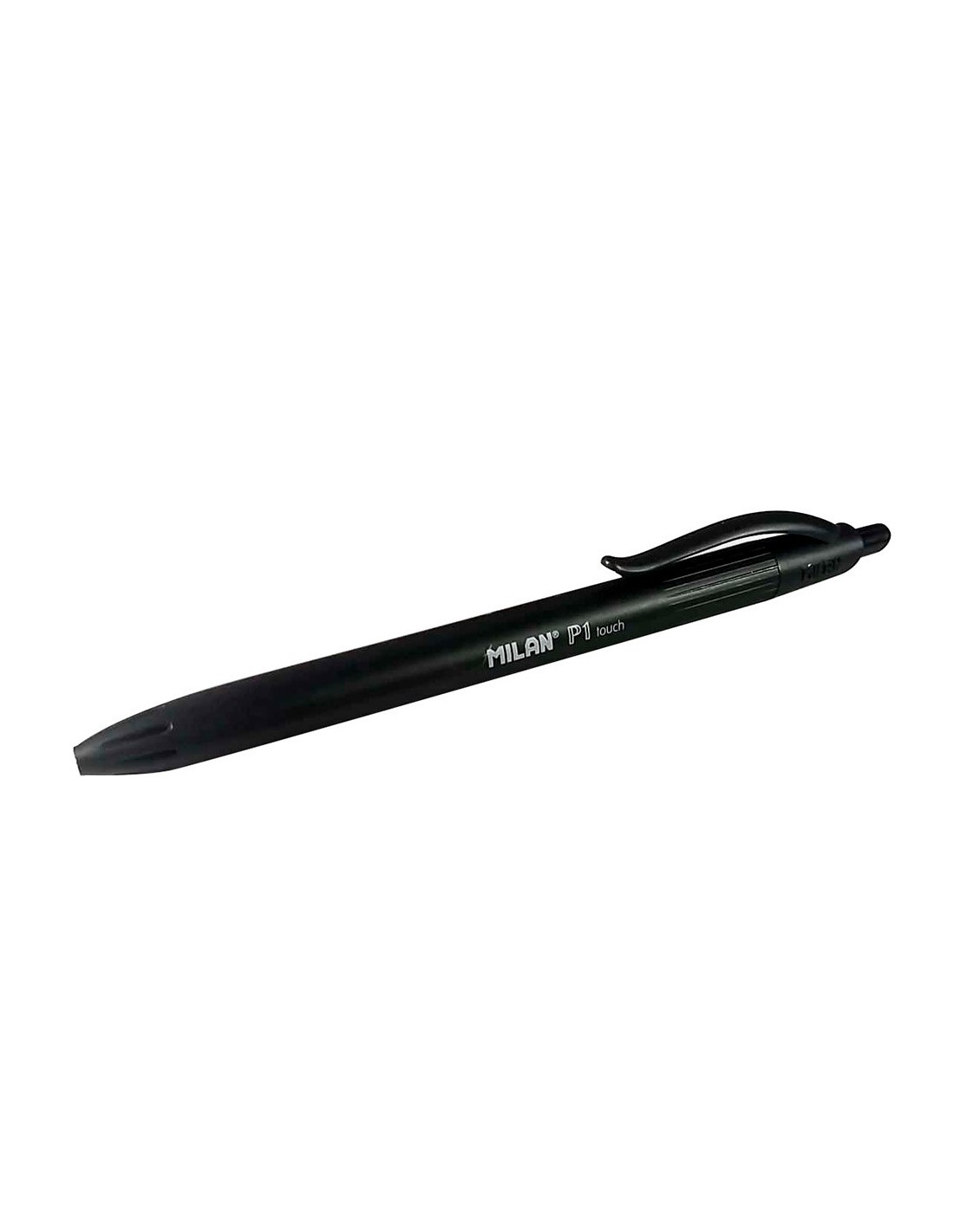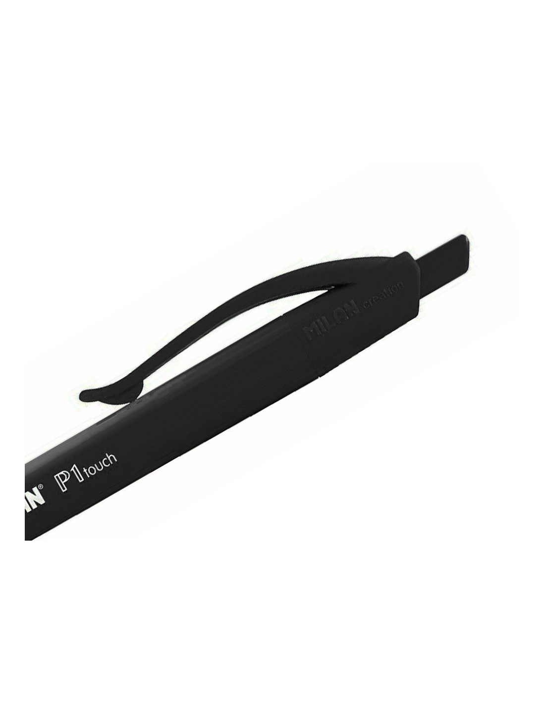 Bolígrafo P1 touch negro, con el cuerpo del mismo color que la tinta. Longitud de escritura aproximada de 1.200 metros. Punta 1 mm. Tinta fabricada en Alemania. Diseño original creado por el departamento de I+D de MILAN. Medidas bolígrafo: 14,1 x 1,7 cm. 1 cm Ø.