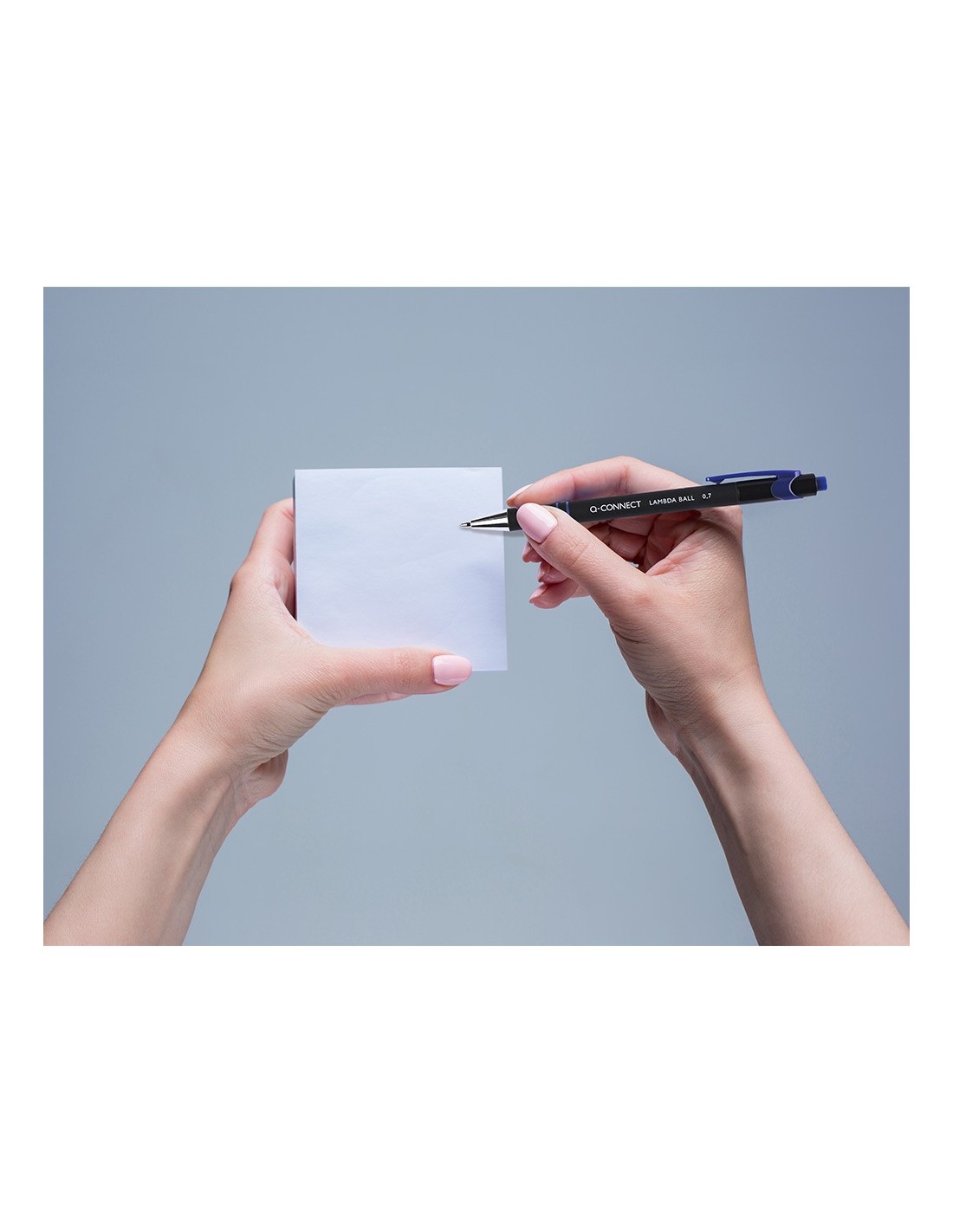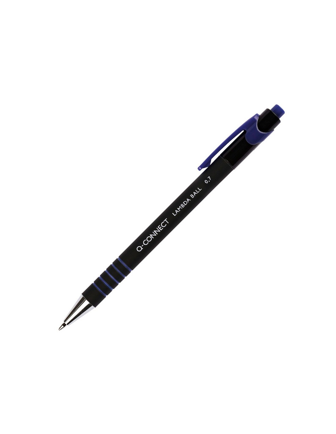 Bolígrafo retráctil con tinta de aceite y cuerpo recubierto de goma para una escritura cómoda. Estrías antideslizantes para una mayor sujeción. Con punta metálica. Tinta del color del clip. Punta de 0,7 mm. Trazo de 0,5 mm.
