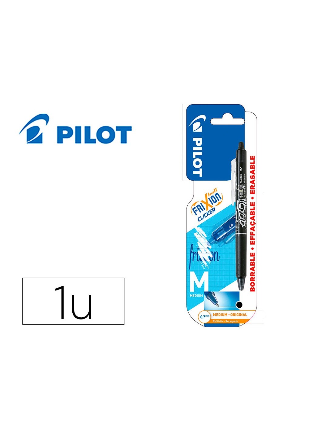 BOLIGRAFO PILOT FRIXION CLICKER BORRABLE, PUNTA MEDIA 0,7MM COLOR NEGRO PRESENTACION EN BLISTER