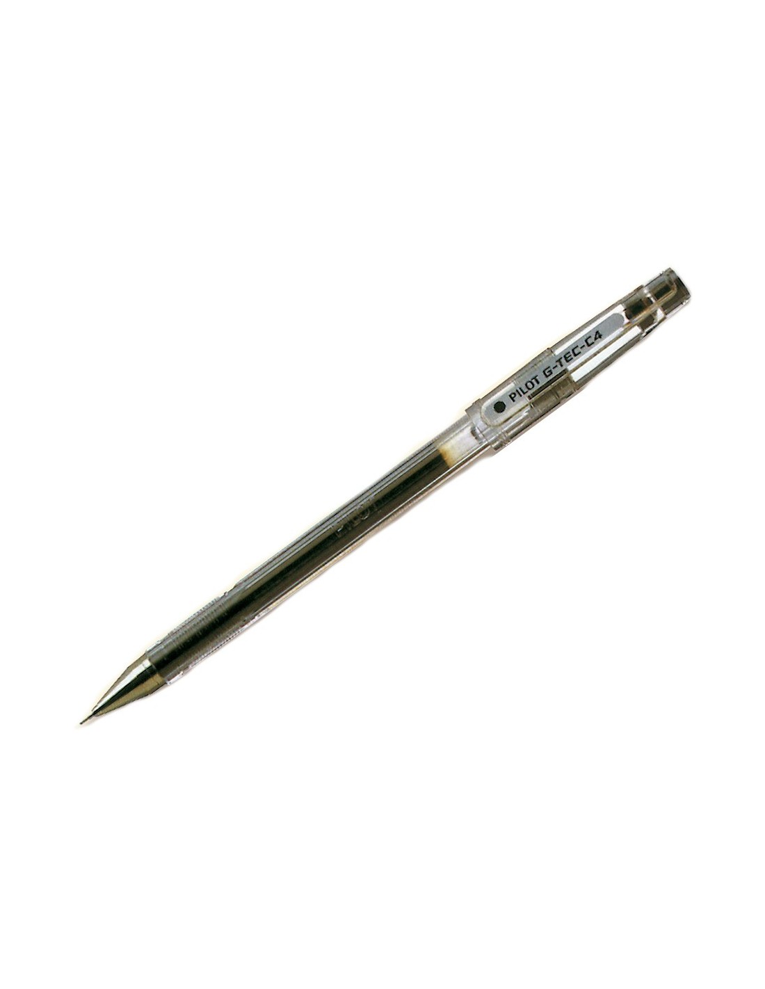Bolígrafo con tinta gel. Cuerpo de plástico transparente que permite calcular el nivel de la tinta. Punta de aguja. Rotulador único para escritura fina. Punta de 0,4 mm. Trazo de 0,2 mm.