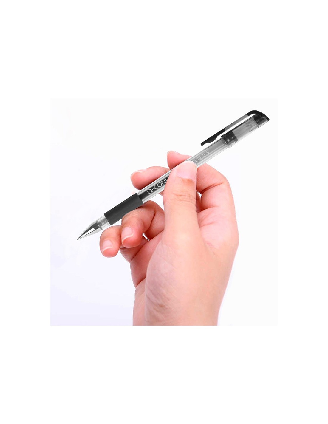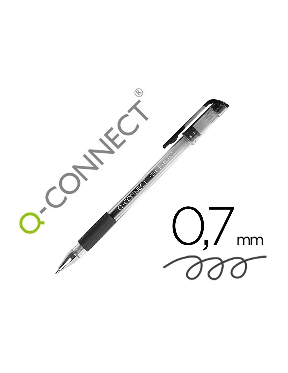 Bolígrafo con tinta gel de escritura muy suave, con cuerpo transparente que permite ver el nivel de la tinta. Sujeción de caucho. Capuchón del color de la tinta. Punta de 0,7 mm. Trazo de 0,5 mm.