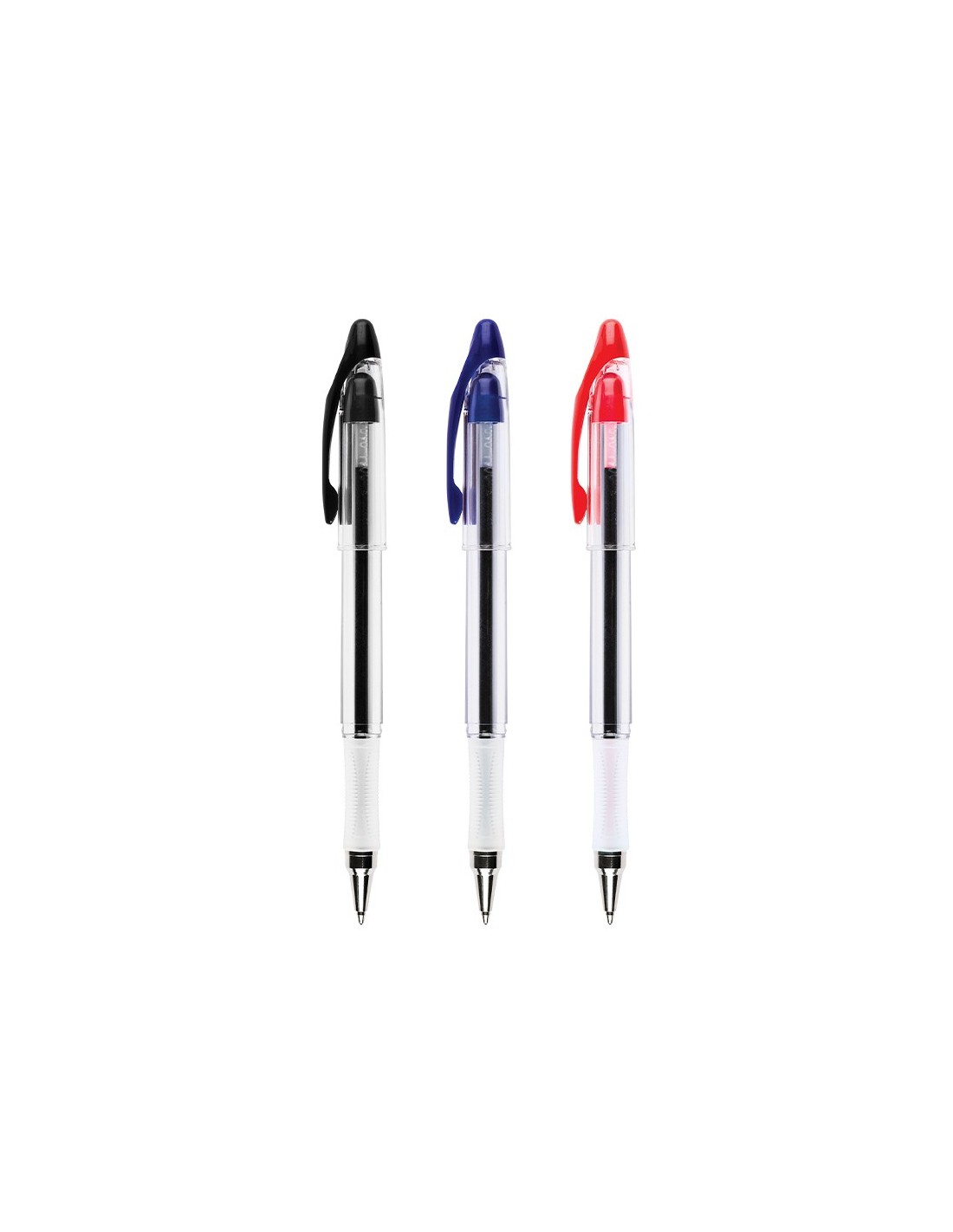 Tinta a base de aceite. Sujeción de caucho para una mayor comodidad. Cuerpo transparente que permite ver el nivel de la tinta. Con capuchón del color de la tinta. Punta media de 1 mm. Trazo de 0,7 mm.