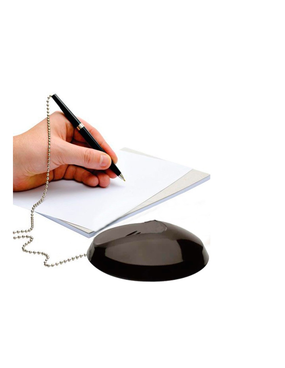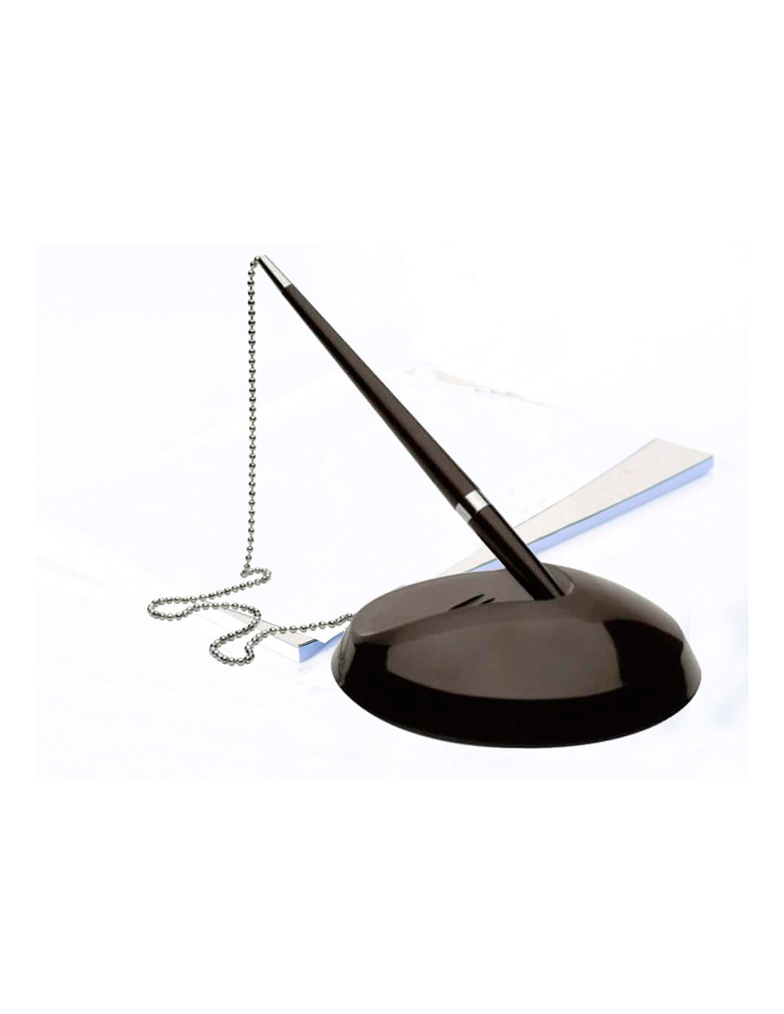 Perfecto para mostradores y oficinas públicas. Soporte adhesivo que garantiza una perfecta adherencia en su base. Cadena metálica. Tinta de color azul. Punta de 1 mm. Trazo de 0,7 mm.