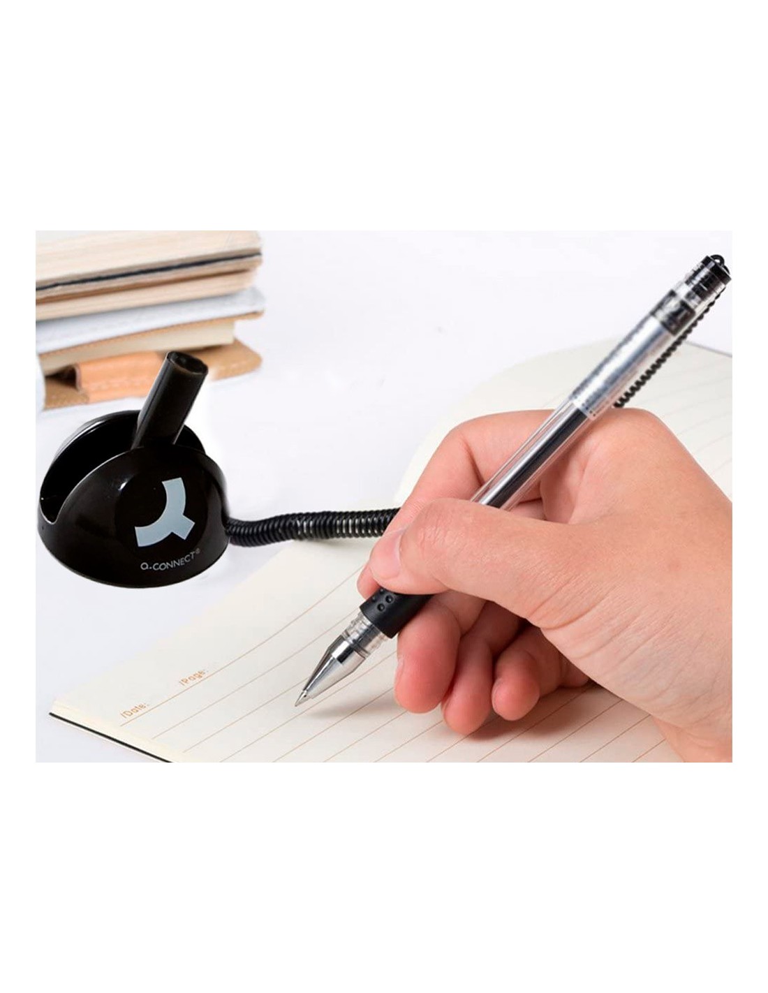 Perfecto para mostradores y oficinas públicas. Tinta de color azul. Soporte adhesivo que garantiza una perfecta adherencia en su base. Cadena plástica. Punta de 1 mm. Trazo de 0,7 mm.